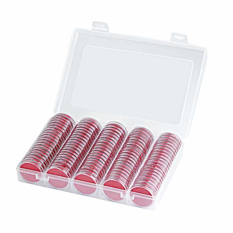 Pelindung koin Kapsul coin bulat 30 mm transparan busa box plastik