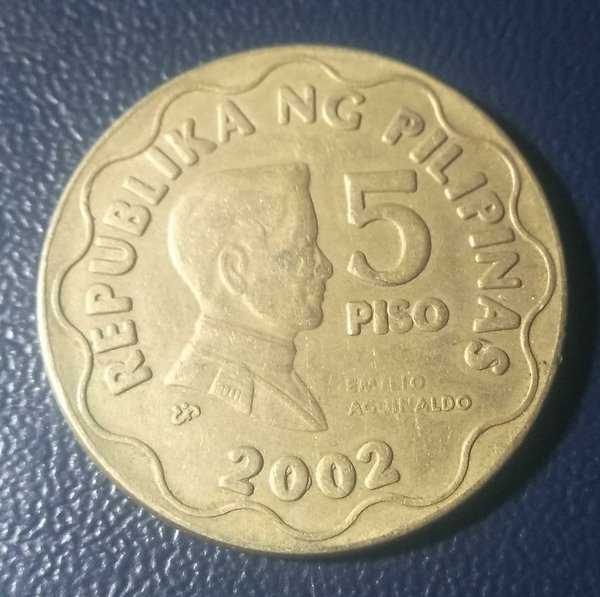 A 1704 Koin 5 Piso Philipinas 2002 Kondisi Sesuai Gambar