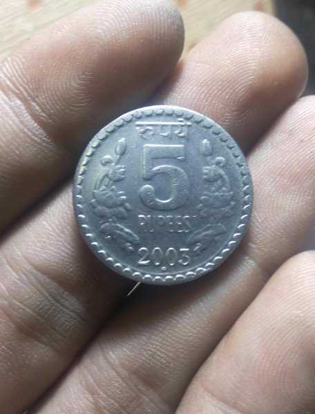 A 1802 Koin Kuno 5 Rupees India Tahun 2003 Bekas Pakai Kondisi Sesuai Gambar