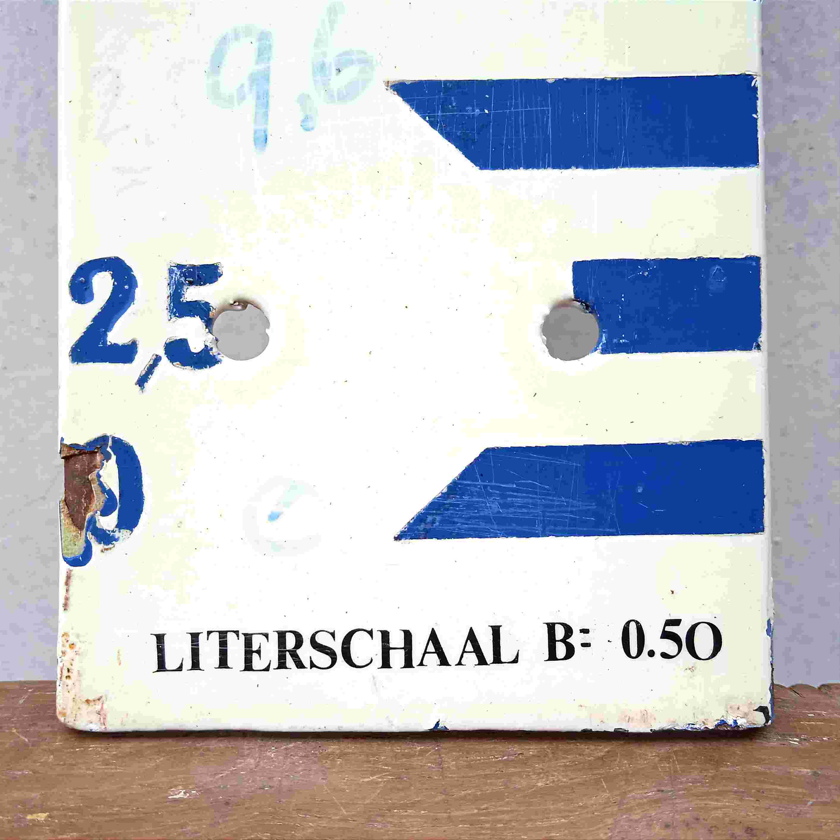 Pajangan Antik Literschaal B : 0,50 Pengukur Air Lama Bahan Besi Tebal Ukuran : 7,5 x 18 cm Kondisi Utuh Original Lama Bukan Buatan Baru Untuk Display Ruangan Vintage Anda Minat Silahkan