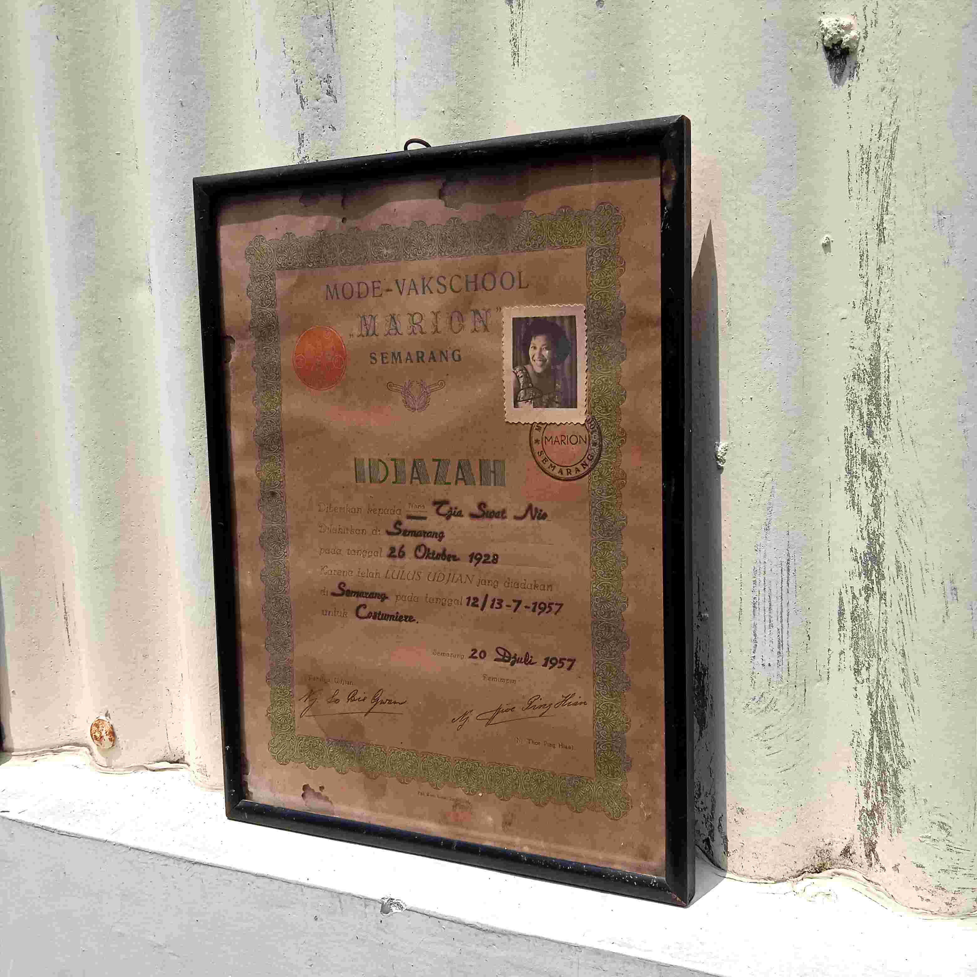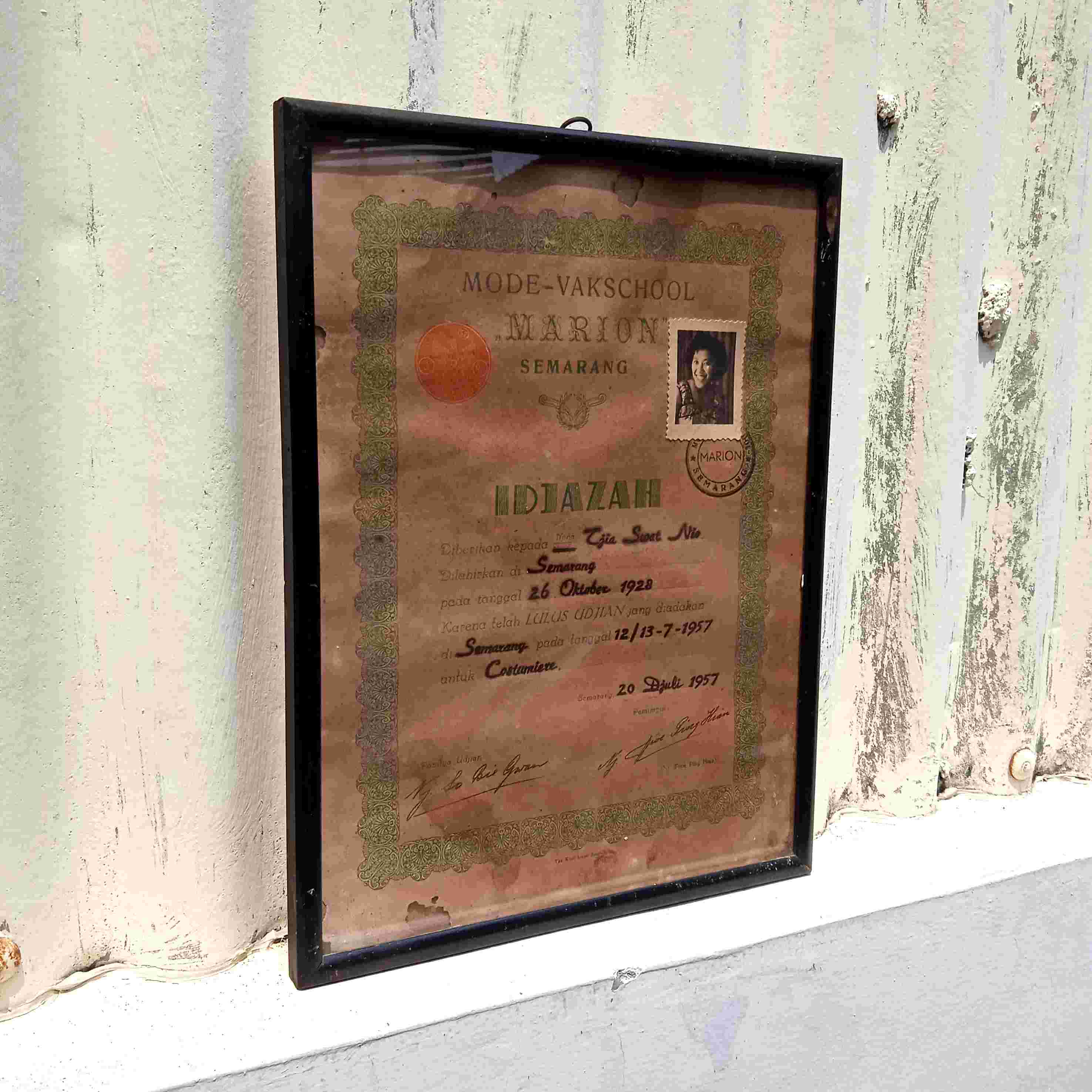 Antik Frame Kayu Lama Idjazah Mode - Vakschool Marion Semarang 1957