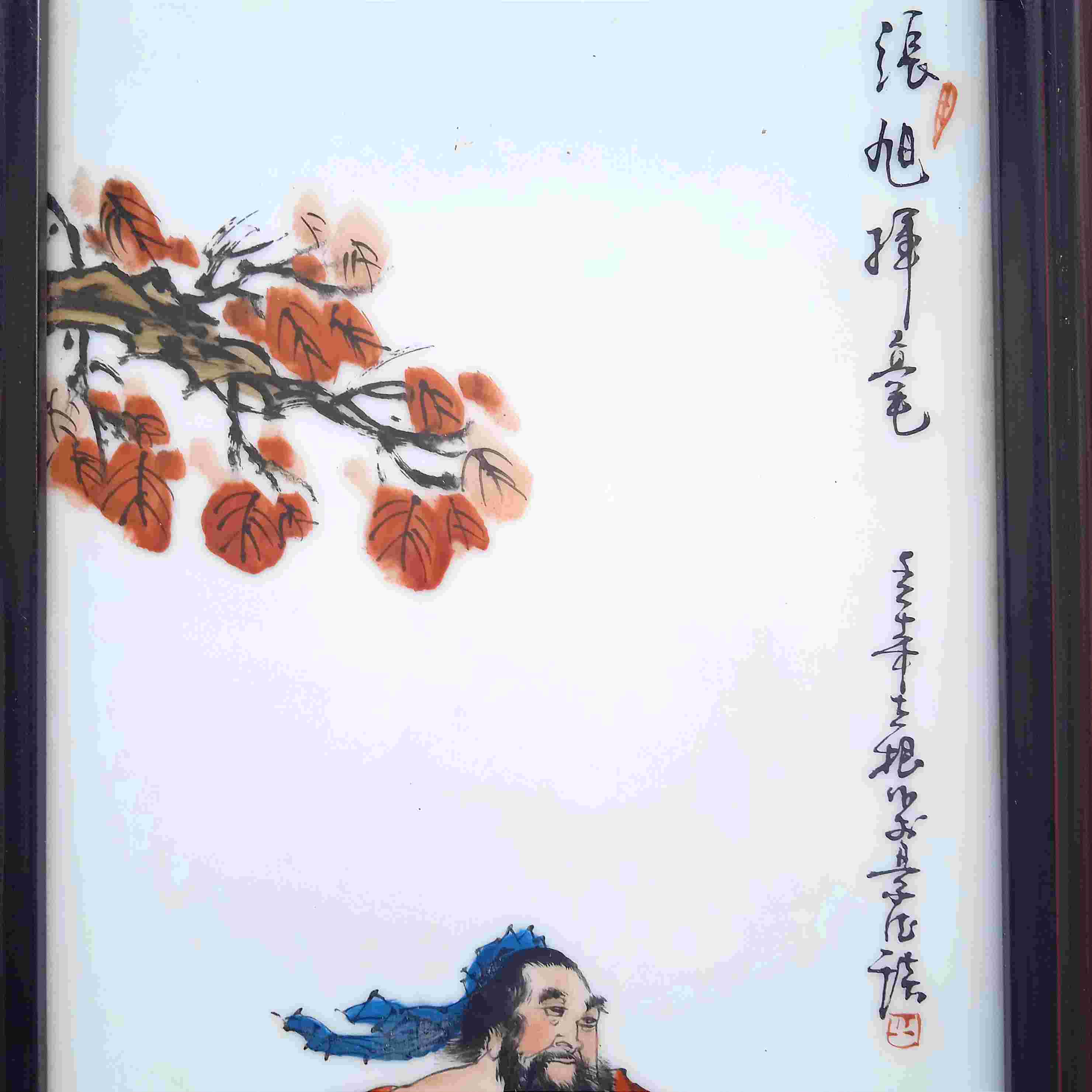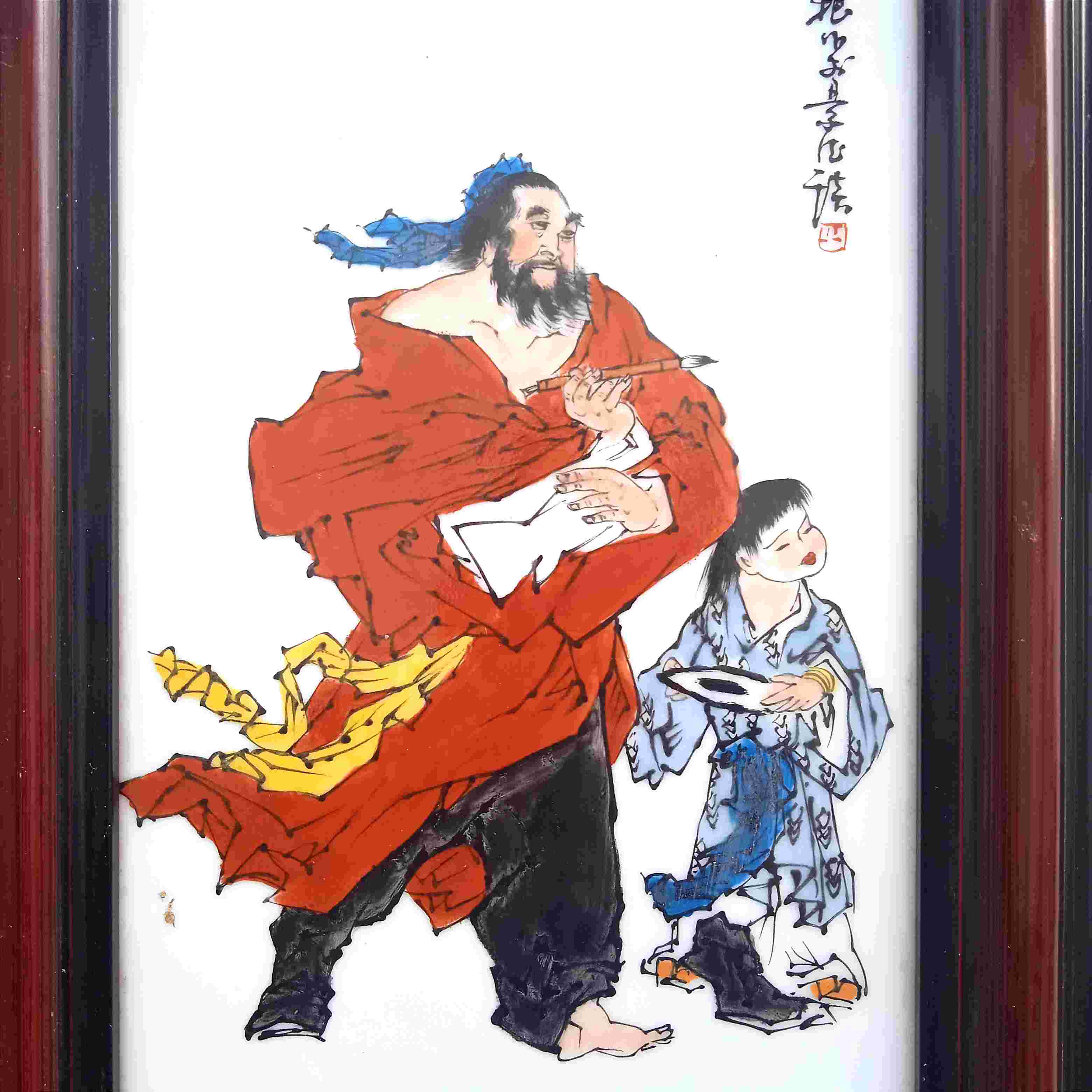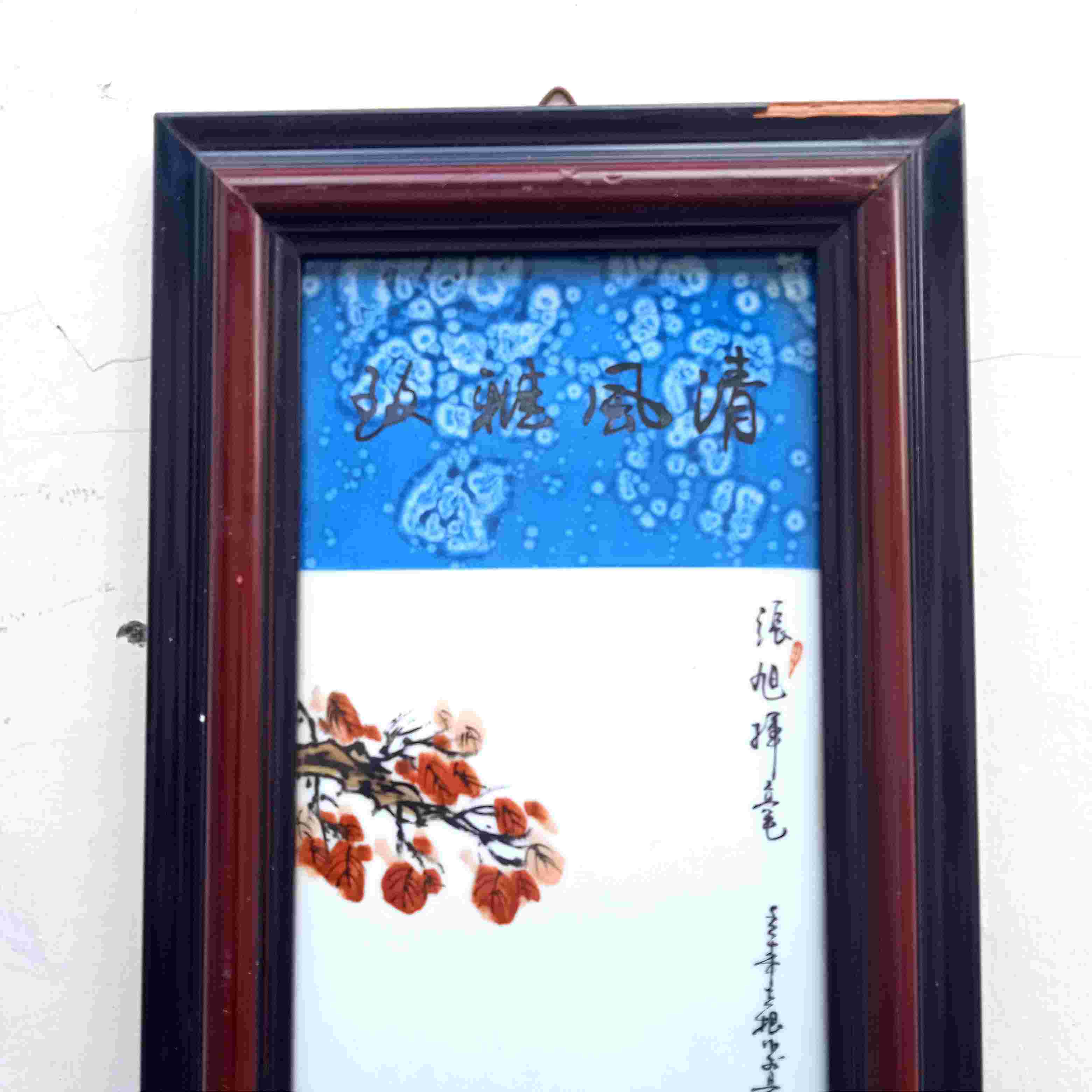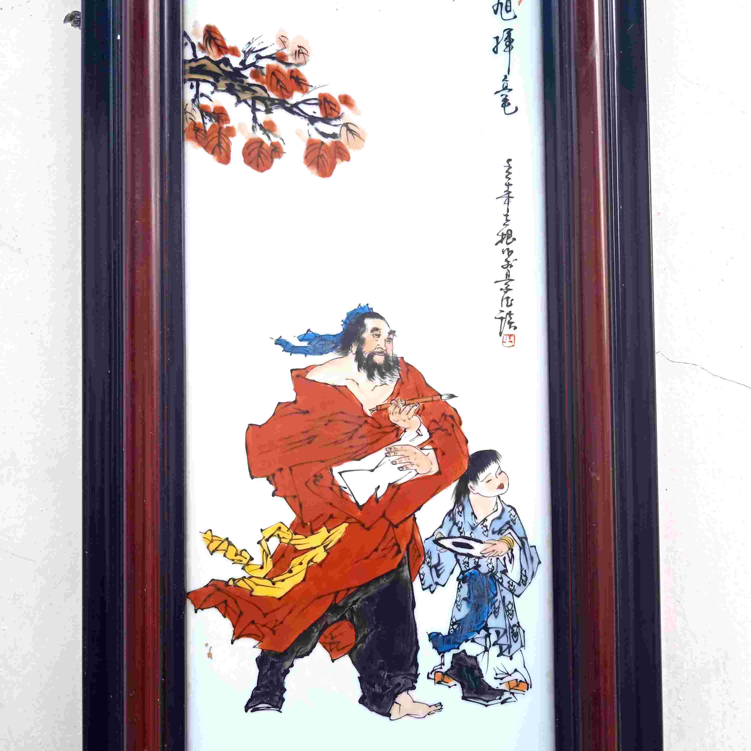 Hiasan Dinding Porselen Lukis Cina Motif Guru Murid Ukuran Frame - P. 25cm - L.64cm Kondisi Utuh Mulus