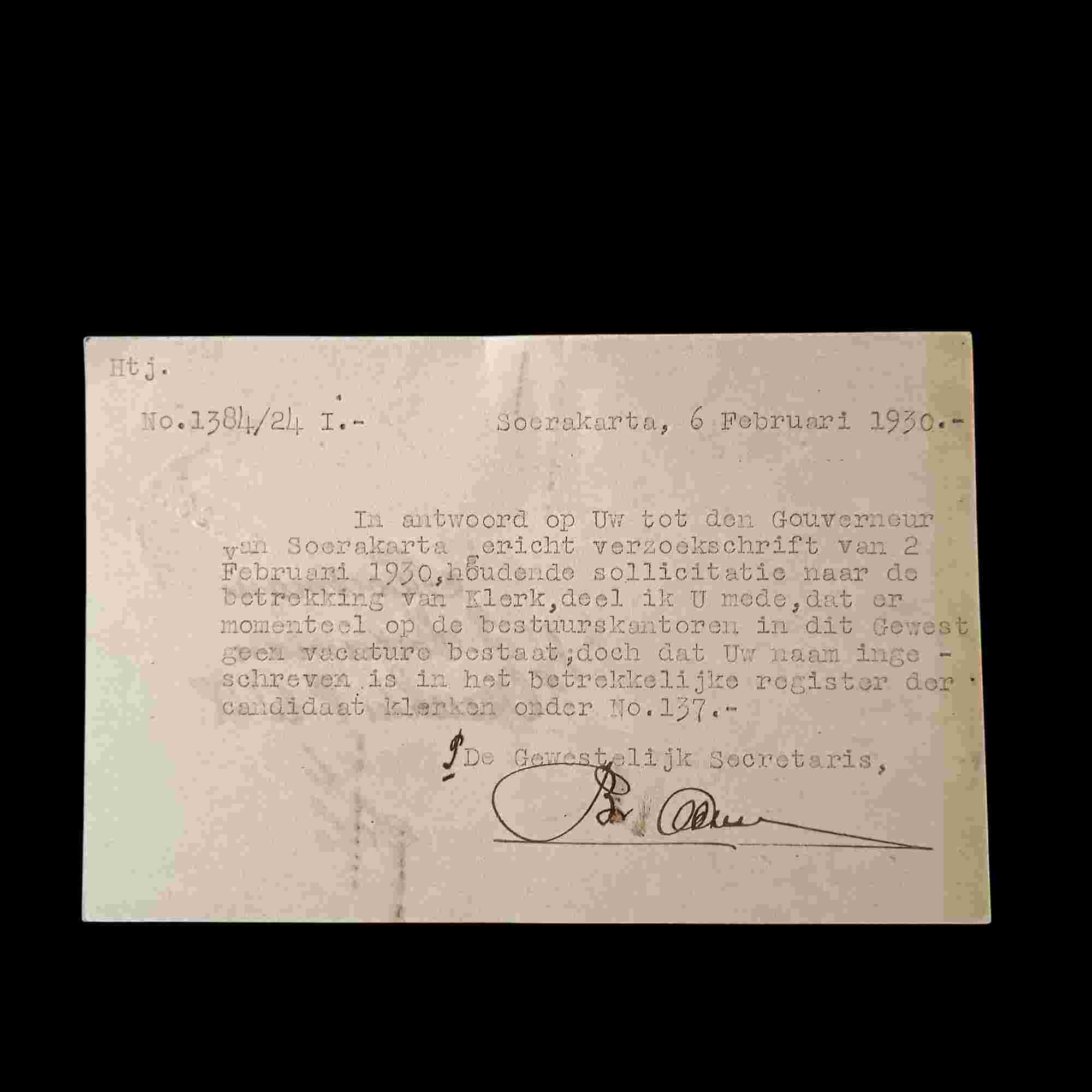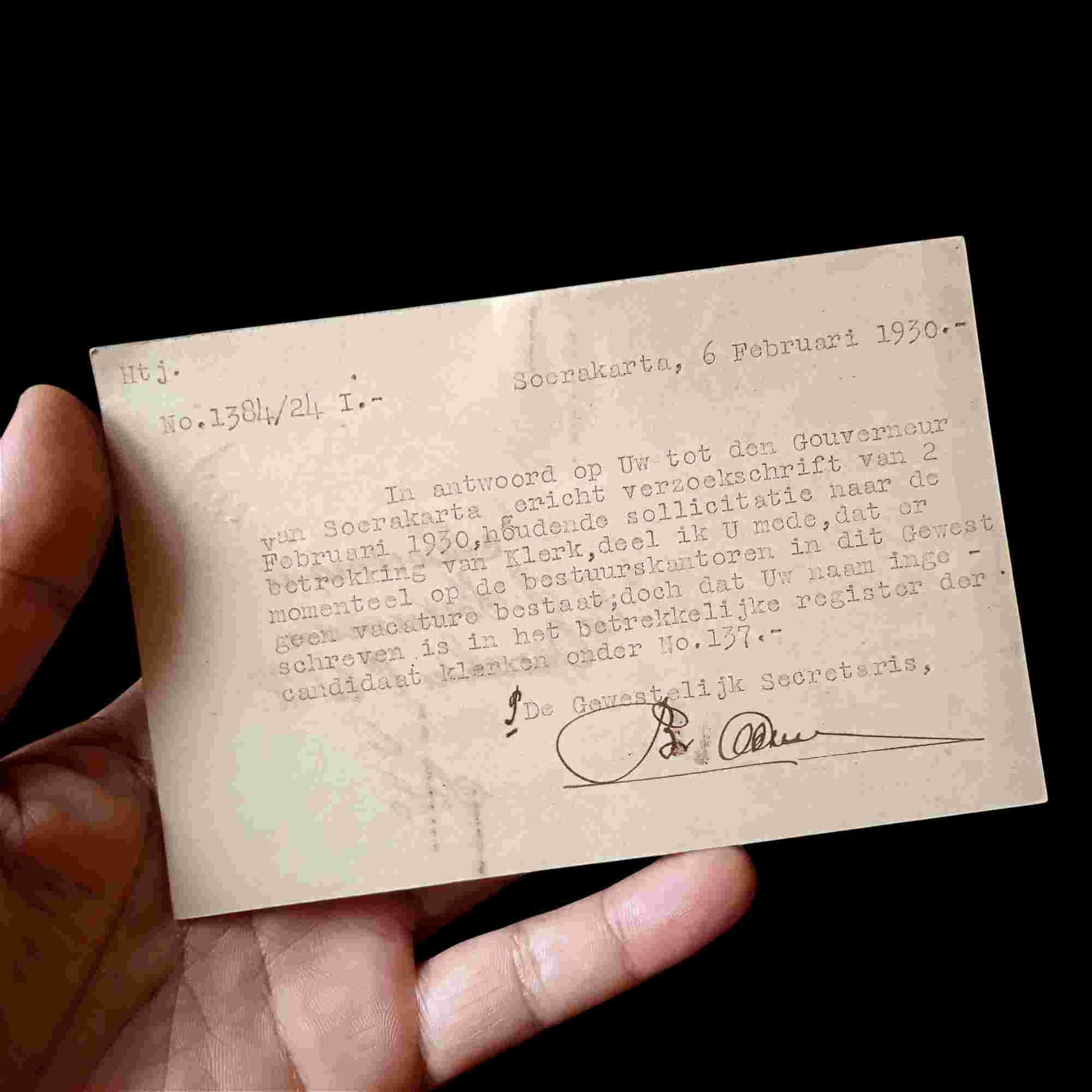 Kartu Pos Tua Era Kolonial Terkirim Cap Pos Dari Soerakarta Ke Tuban Tertanggal 6 Februari 1930 Tulisan Mesin Ketik Kondisi Utuh Minat Silahkan