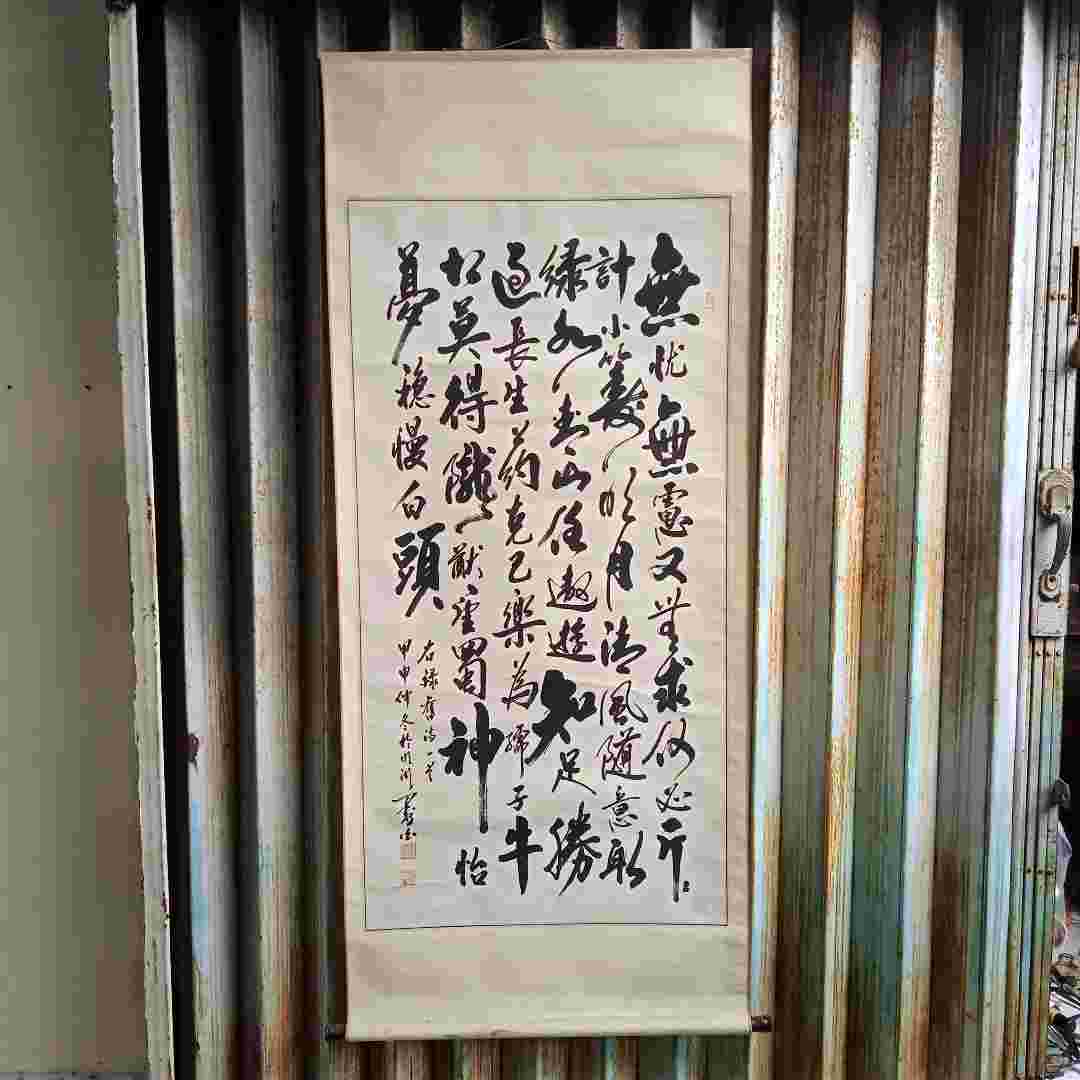 Antik Lukisan Kertas Kaligrafi Syair Cina Tinta Basah Ukuran Besar Tua