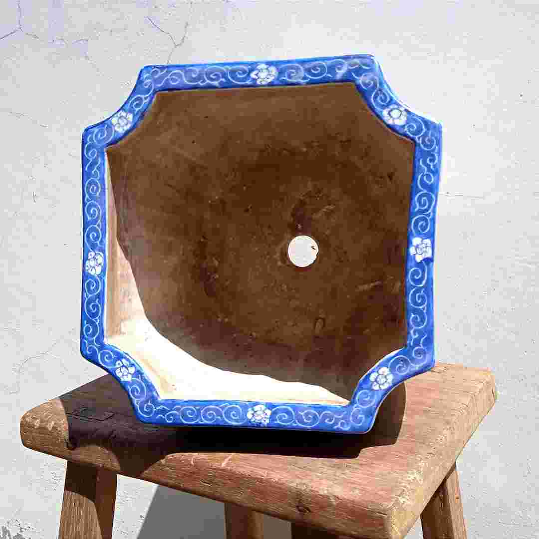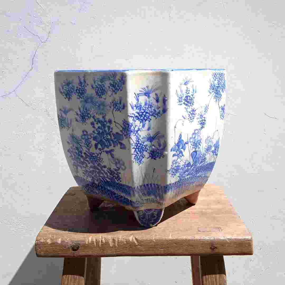 Antik Pot Tanaman Porcelain Lukis Biru Putih Tua Kuno Utuh