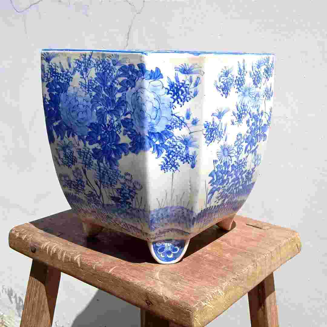 Pot Tanaman Tua Porcelain Lukis Biru Putih Ukuran - Panjang : 19cm - Lebar : 19cm - Tinggi : 19cm Kondisi Utuh Mulus Minat Silahkan