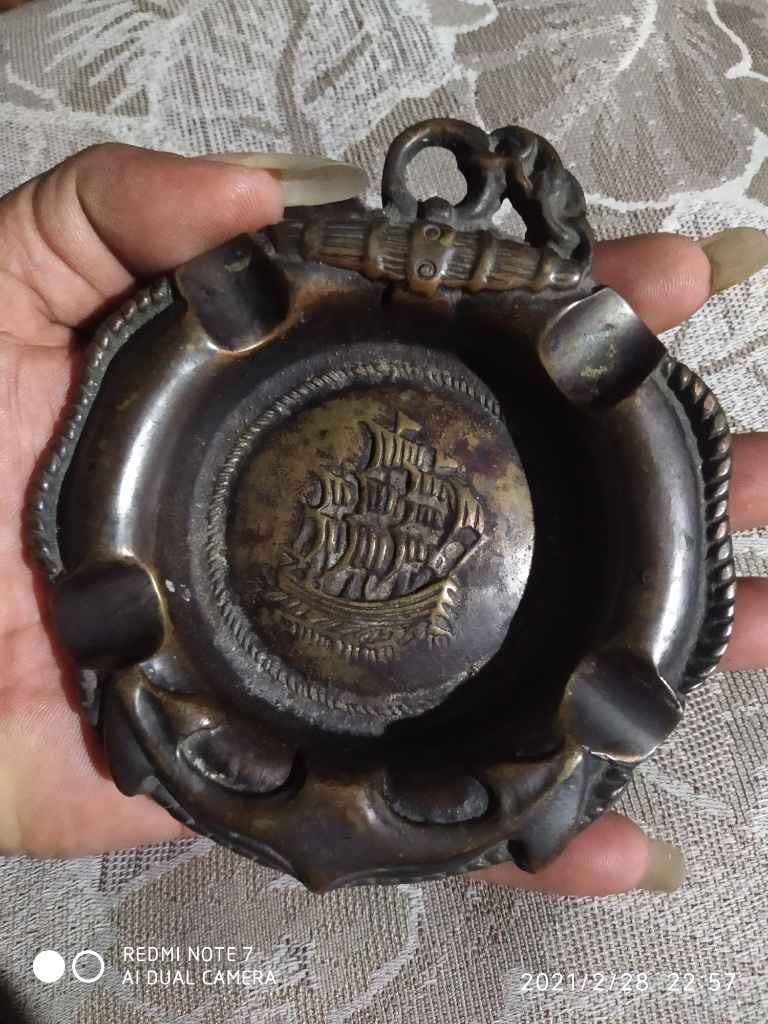 Asbak kuningan tebal motif kapal laut