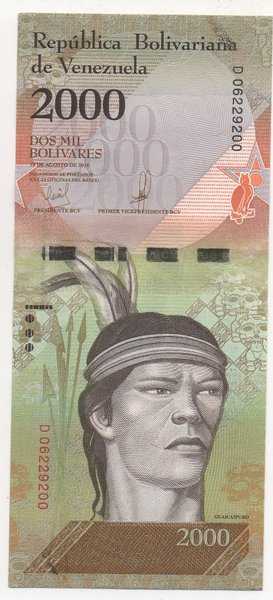 BL 1639 Venezuela 2000 Bolivar Tahun 2016 UNC Mulus Per 1 Lembar