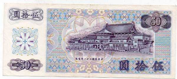 BL 1913 China Taiwan 50 Yuan tahun 1982 Bekas Pakai Ada Lipat Sesuai Gambar