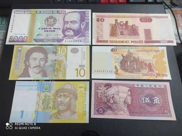 1Lembar Uang cambodja1Lembar uang China1Lembar uang Belarus1Lembar uang Ukraina1Lembar uang Serbia1Lembar uang Peru