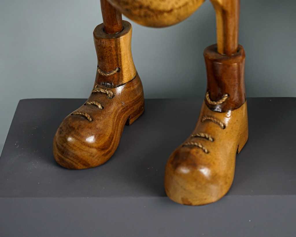 They are made from bamboo tree roots feet neck and head are made of teak hardwood