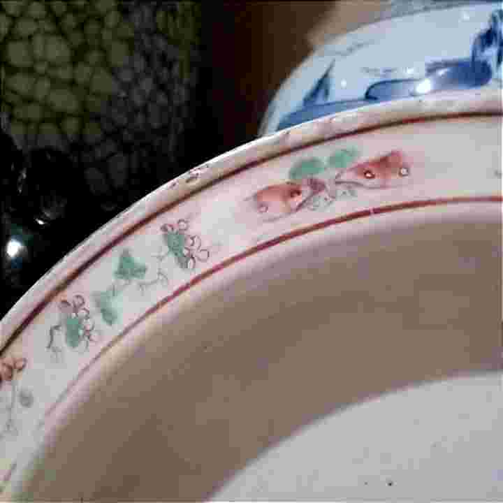 Barang Antik Piring Tatakan Pot Porselen Famille Rose Tua Kuno