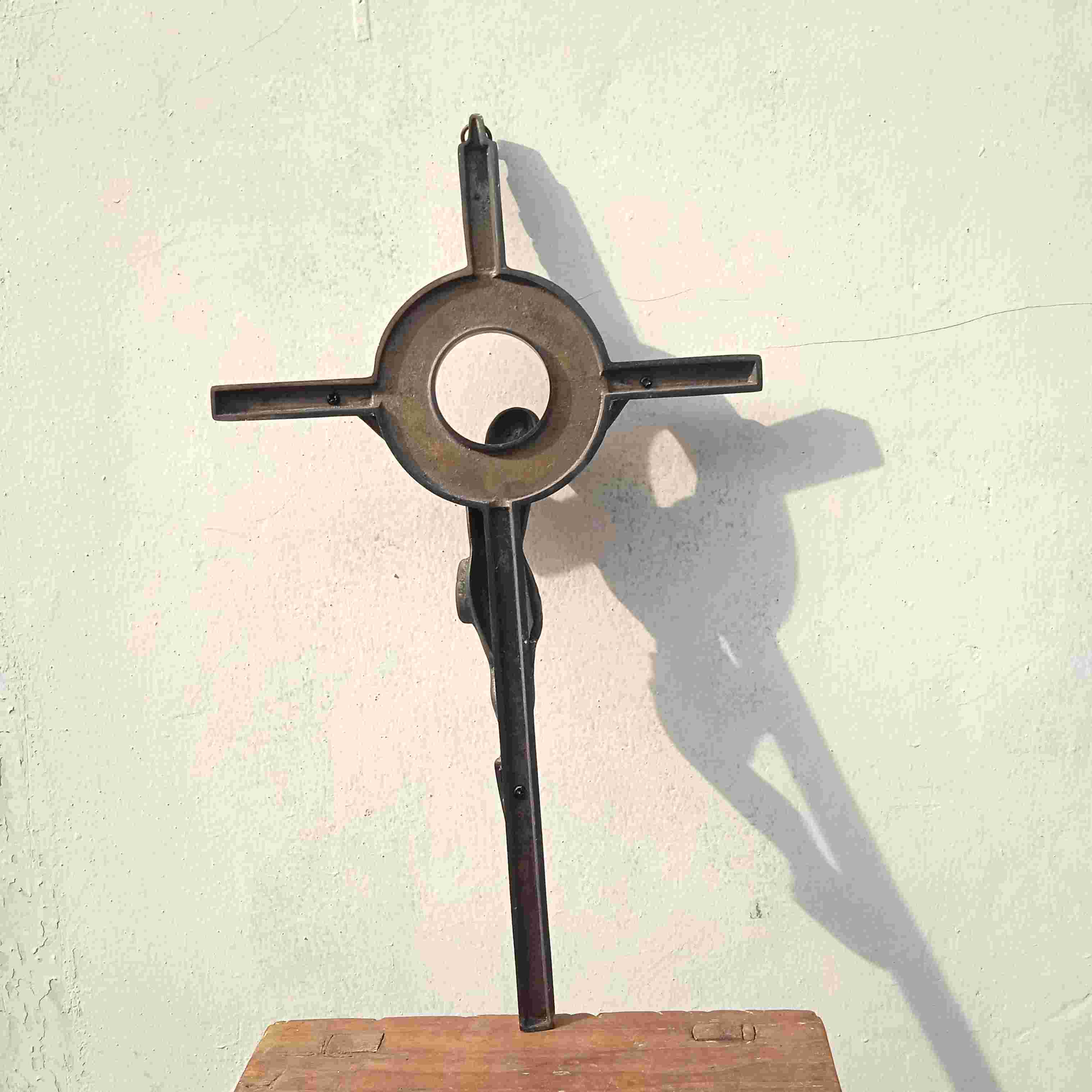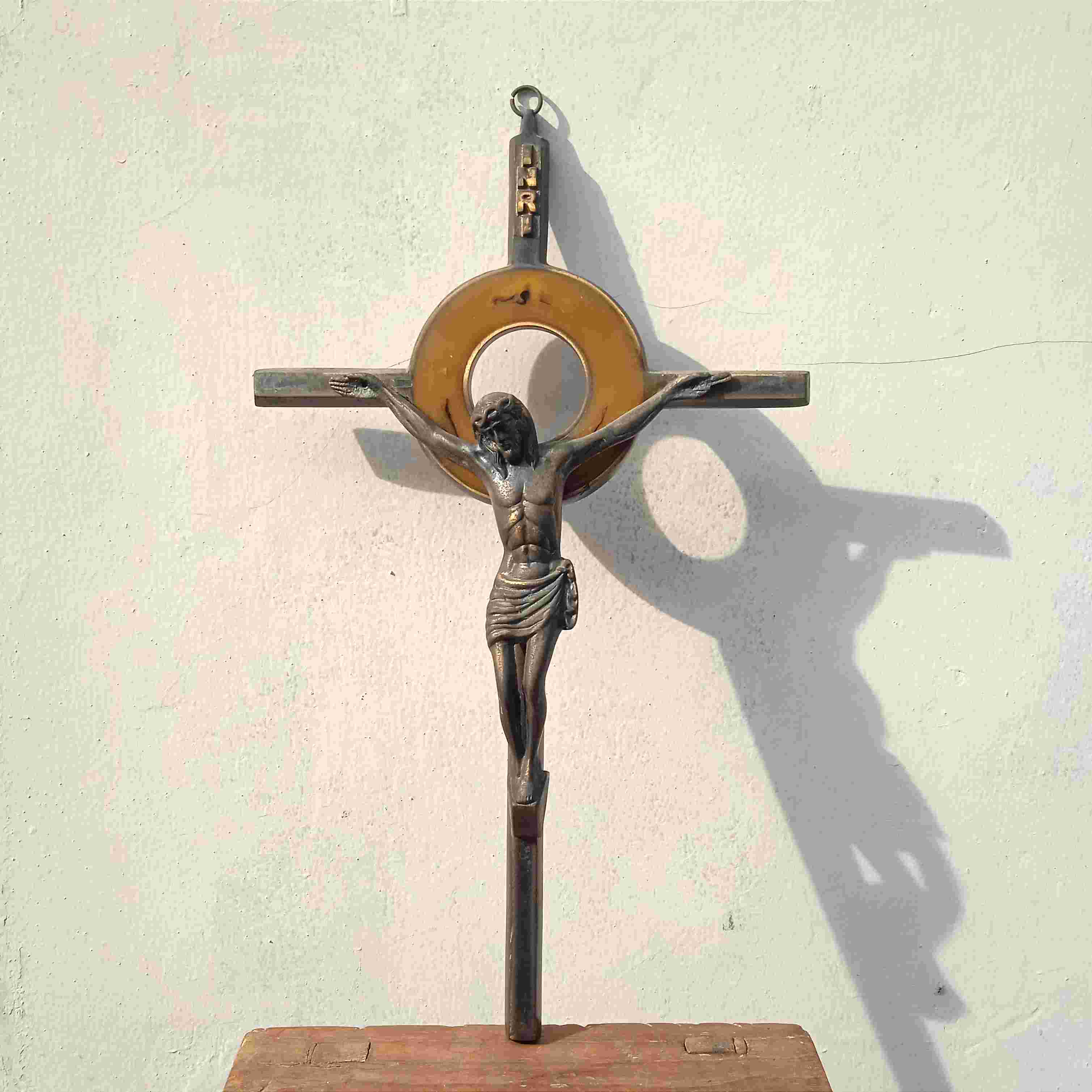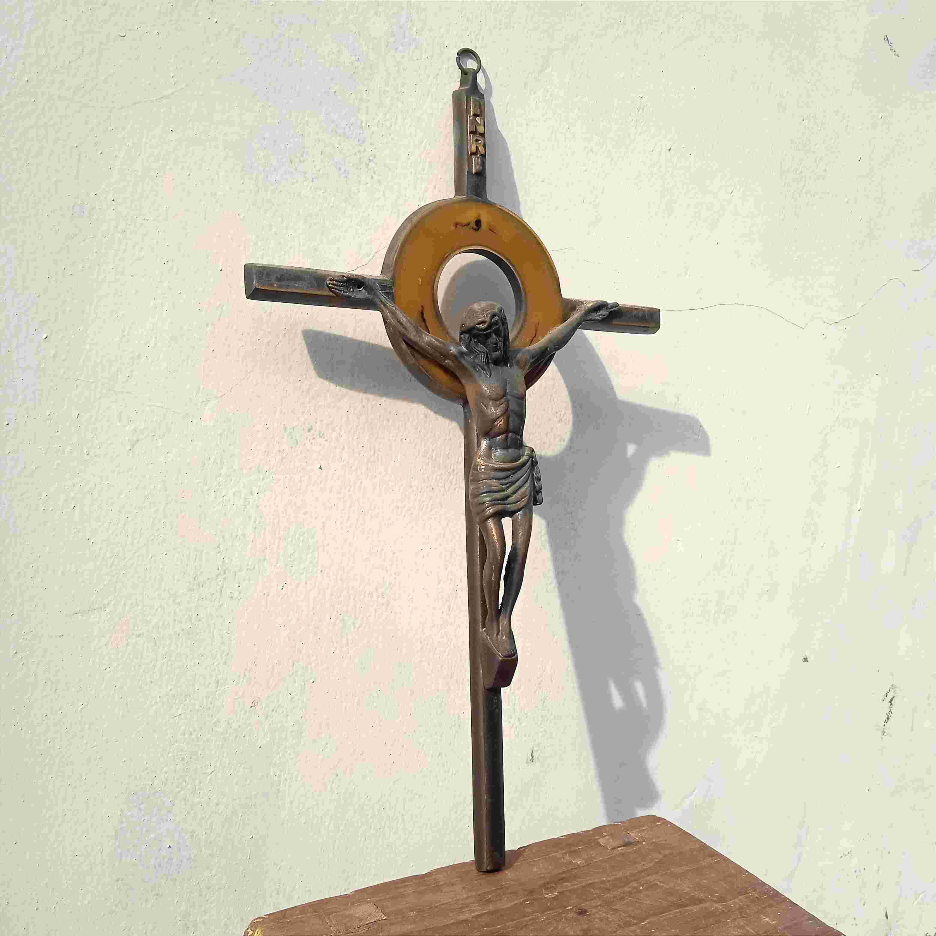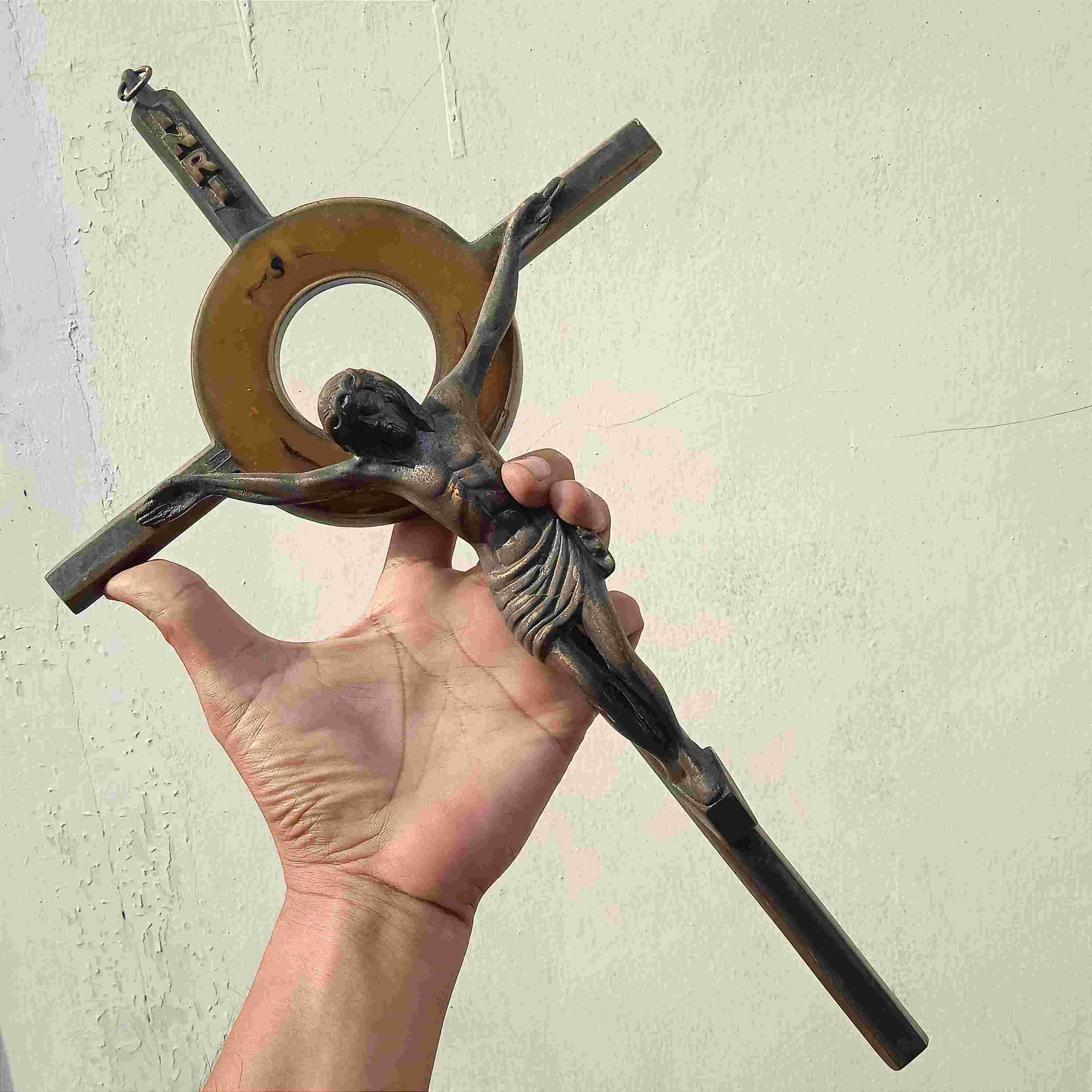 Barang Antik Salib Korpus Dinding Bahan Kuningan Detail Model Unik