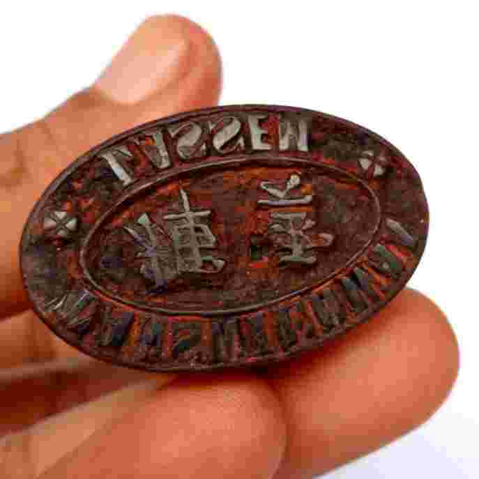 Barang Jadul Stempel Segel Logo Peranakan Ukir Kayu Swanci Antik