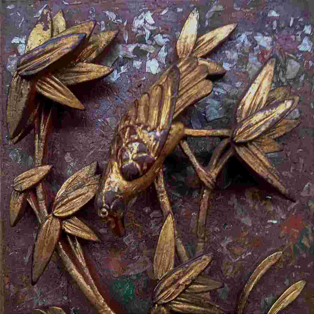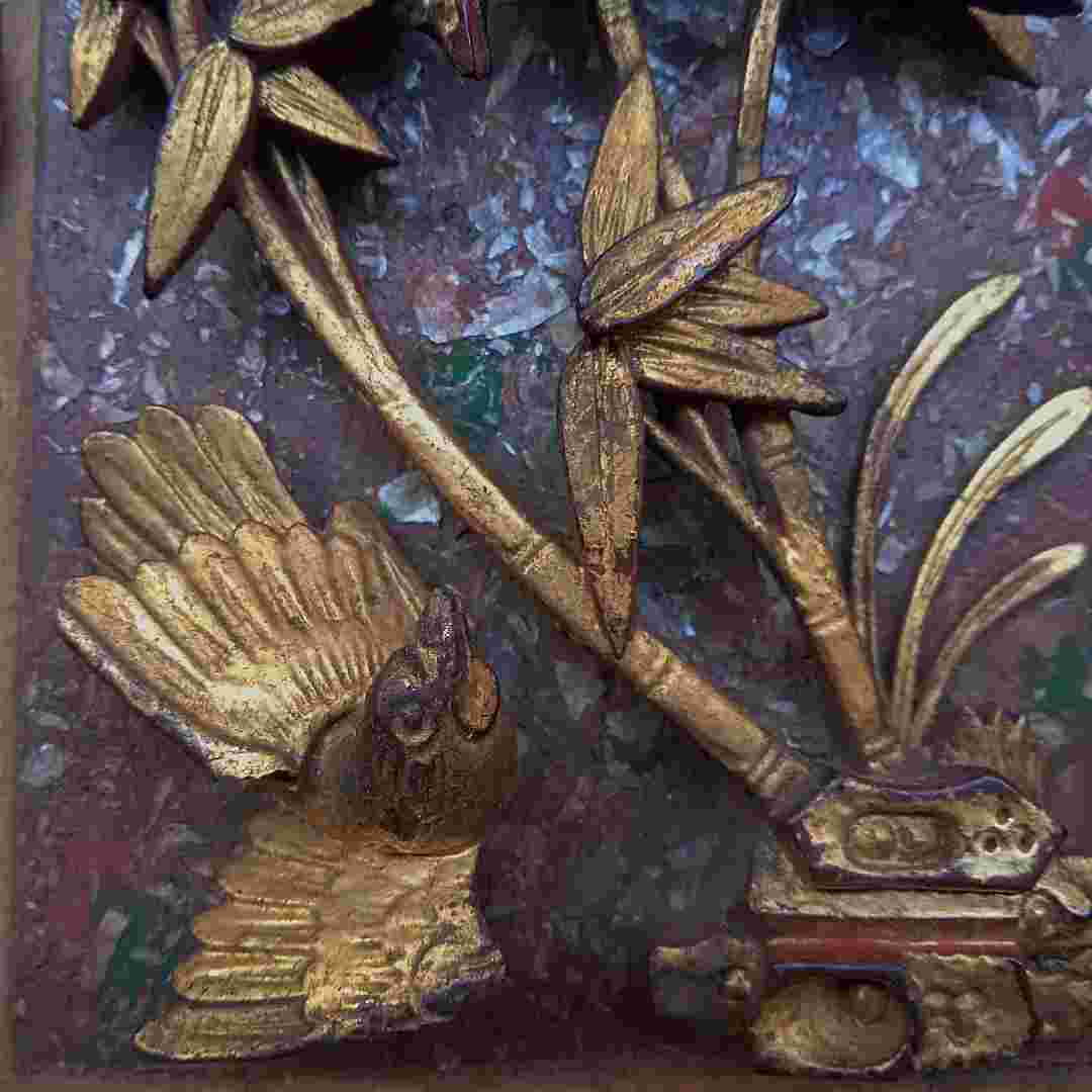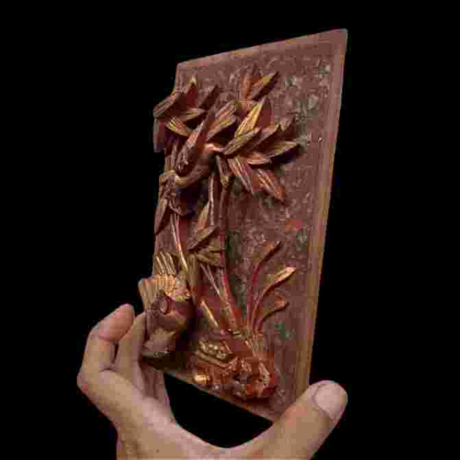 Ukiran Panel Peranakan Kayu Jati Motif Burung Detail Warna Prodo Gincu Original Dimensi 13cm x 19cm x 3.5cm Original Tua Antik