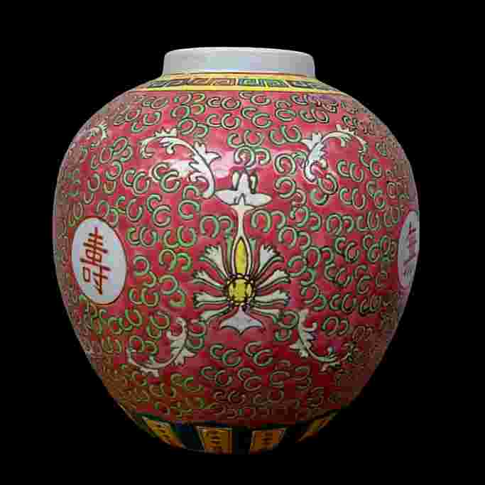 Guci Porselen Famille Rose Motif Timbul Ukuran Lumayan Besar Diameter : 31cm Tinggi : 22cm Kondisi Utuh, Mulus Minat Silahkan