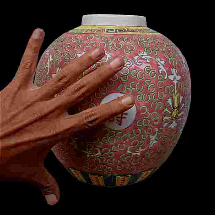 Barang Jadul Guci Porselen Famille Rose Motif Timbul Utuh Besar Antik