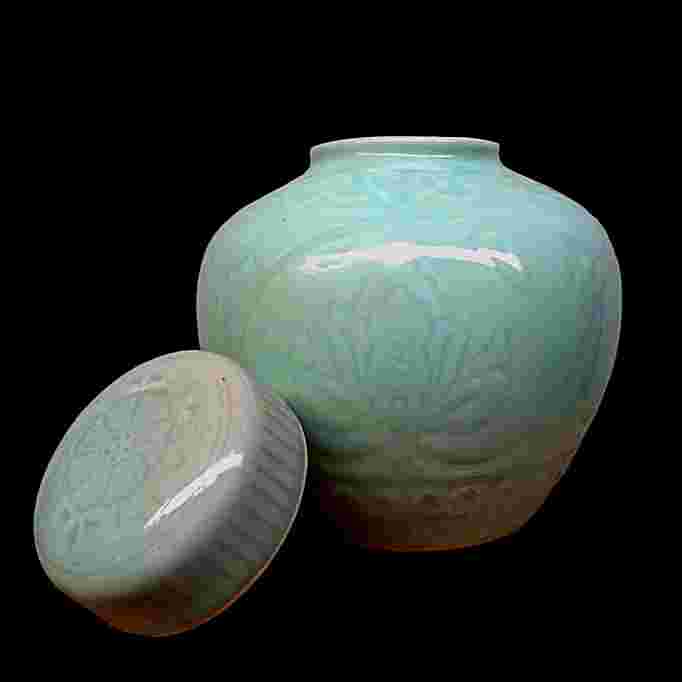 Barang Jadul Porselen Tempat Jahe Celadon Cina Ukuran Besar Utuh Antik