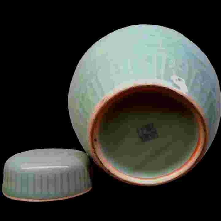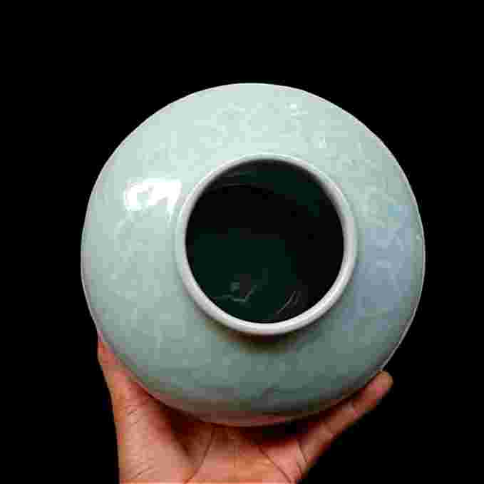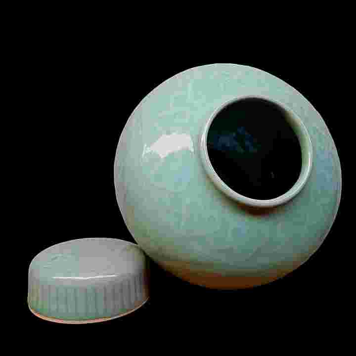 Ginger Jar / Tempat Jahe Pocelain Celadon Cina Ukuran Besar Diameter : 18cm Tinggi : 20cm Kondisi Utuh Mulus, Layak Koleksi Minat Silahkan