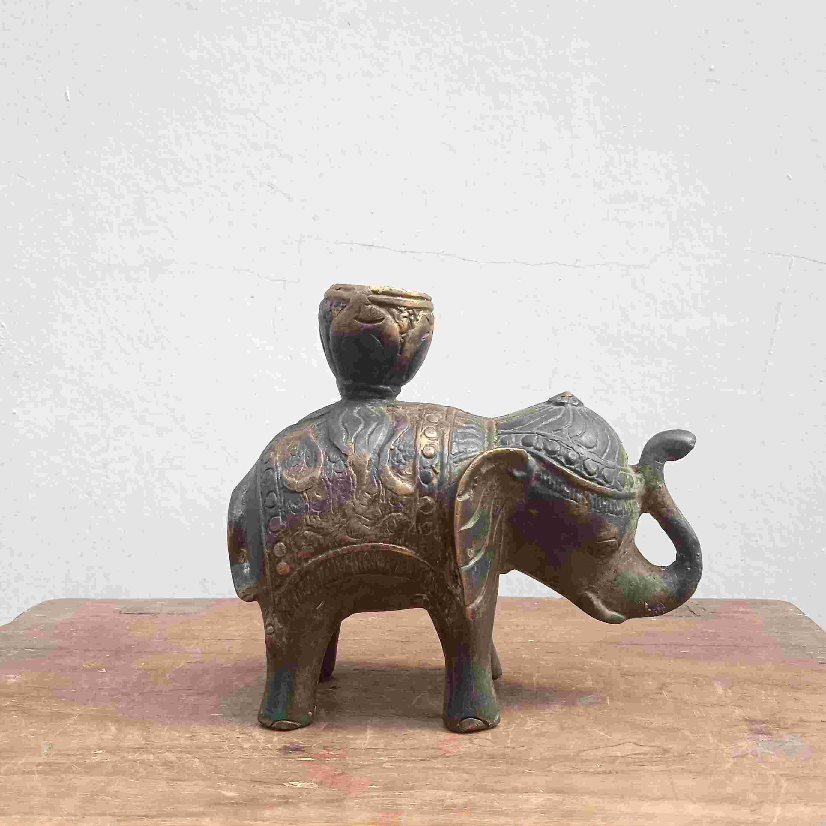 Barang Jadul Tempat Lilin Kuningan Motif Gajah Halus Kuno Tua Antik