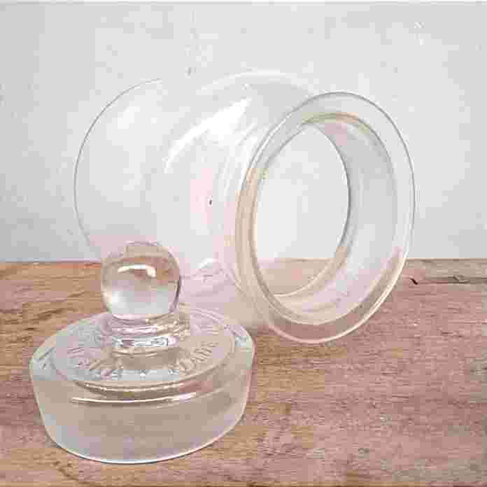 Toples Kaca Bening Ukuran Kecil Ishidzuka Made in Japan Diameter : 8.5cm Tinggi : 12cm Kondisi Utuh Original Tua