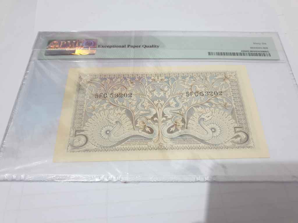 Uang soekarno riau rp5 1960 aunc pmg 55 rare