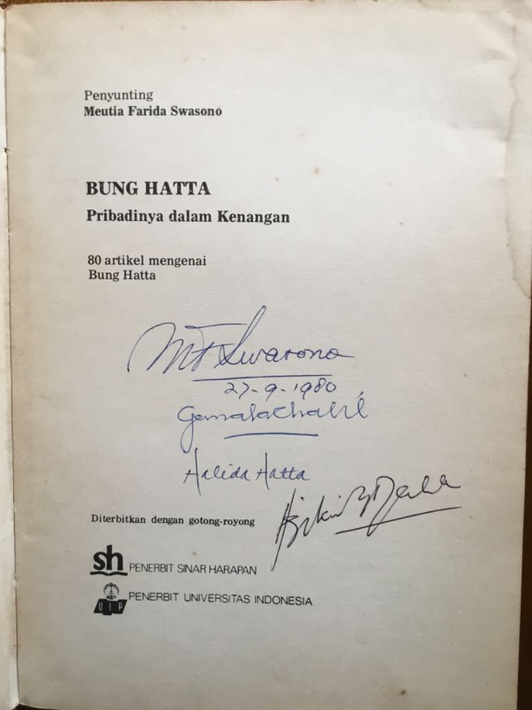 Buku yang berisi 80 artikel mengenai Bung Hatta ini disunting oleh putrinya, Meutia Farida Swasono. Buku yang dikoleksi ini, ditandatangani langsung oleh tiga putri beliau, bu Meutia sendiri, bu Gemala, dan bu Halida pada tahun 1980.