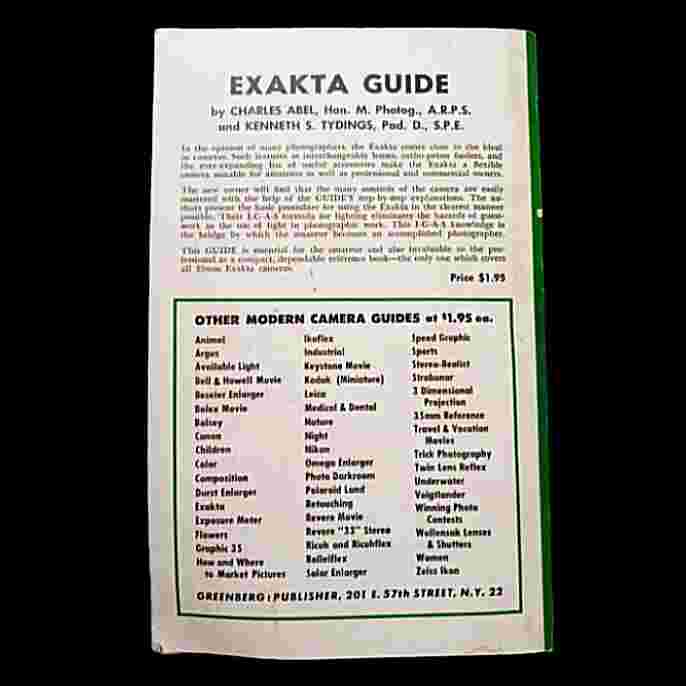 Buku Panduan Pemakaian Kamera EXAKTA Guide With Special Color Section By Charles Abel, ATAS And Kenneth Tydings S.P.E New York Cetakan Ke Dua Belas1957 Banyak Foto Kondisi Utuh Kertas Tebal, seperti baru 128 halaman Komplit