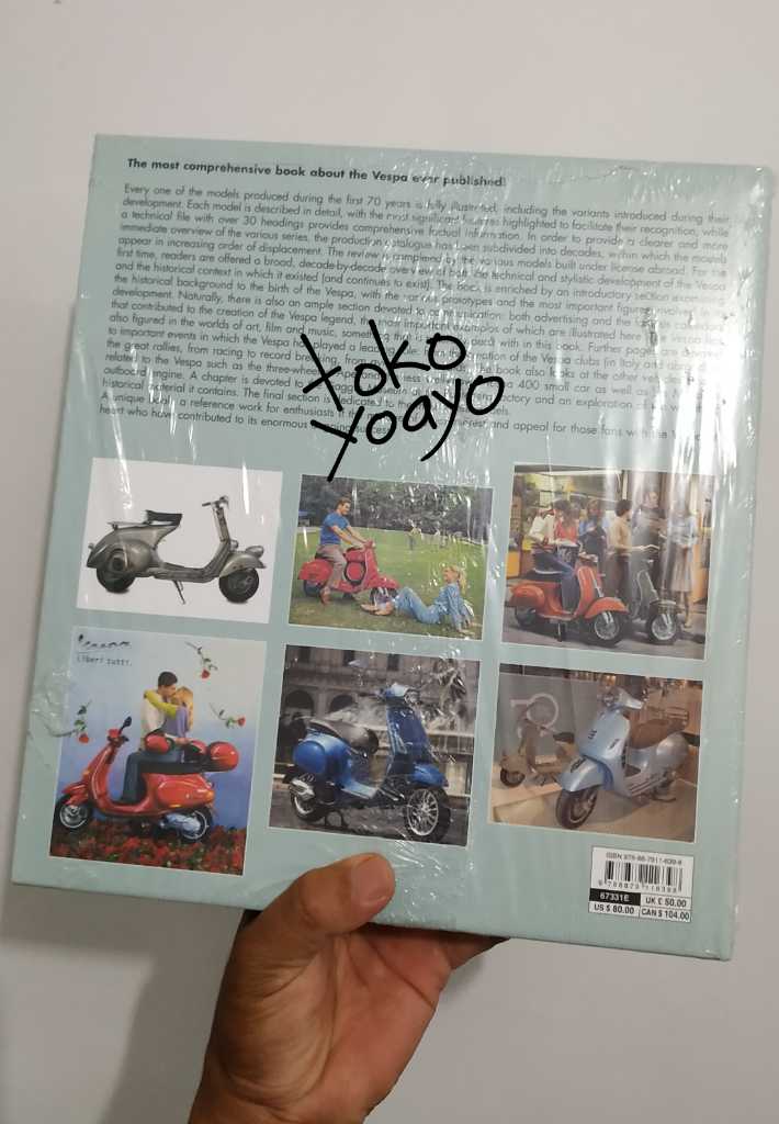 Edisi update buku Vespa 70 Tahun: Sejarah lengkap dari tahun 1946, diterbitkan pada tahun 2011 untuk merayakan ulang tahun ke-65 Vespa. April 1946 adalah tanggal debut kendaraan roda dua kecil yang revolusioner, yang, selain meninggalkan bekas yang tak terhapuskan pada sejarah transportasi, menjadi fenomena budaya nyata bagi generasi berikutnya. Sederhana dan elegan, praktis dan nyaman, inilah beberapa karakteristik yang memastikan skuter populer ini meraih kesuksesan yang tidak dapat diulang, dengan 35.000 di antaranya dibuat pada tahun 1949 saja. Tujuh puluh tahun setelah kelahirannya, Vespa telah mengukuhkan dirinya di seluruh dunia. Buku ini mencakup epik Vespa yang mempesona, dari debutnya hingga saat ini, melalui ratusan gambar dan dokumen berharga dari berbagai zamannya. Pekerjaan tersebut mencakup katalogisasi sistematis dari semua model yang telah muncul selama 70 tahun itu, masing-masing disertai dengan spesifikasi teknis yang terperinci.