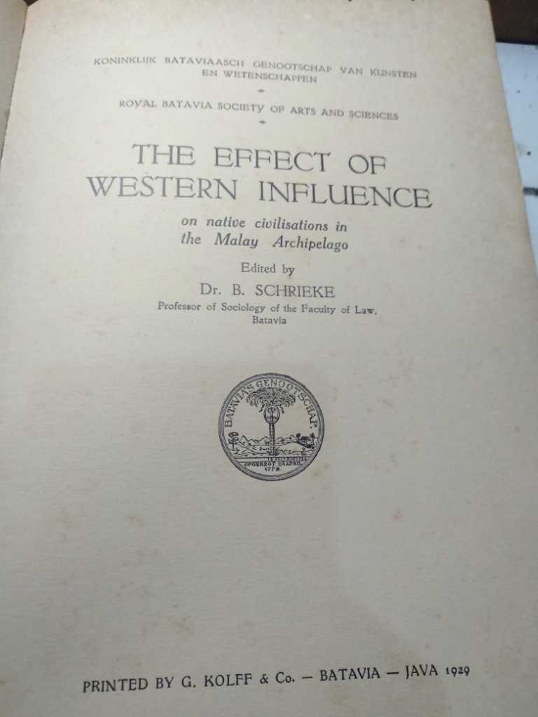 Buku Kono Malay Archipelago. The Effect of Western Influence.penulis Dr. B Schrieke .Professor of sosiologi of faculty of law Batavia