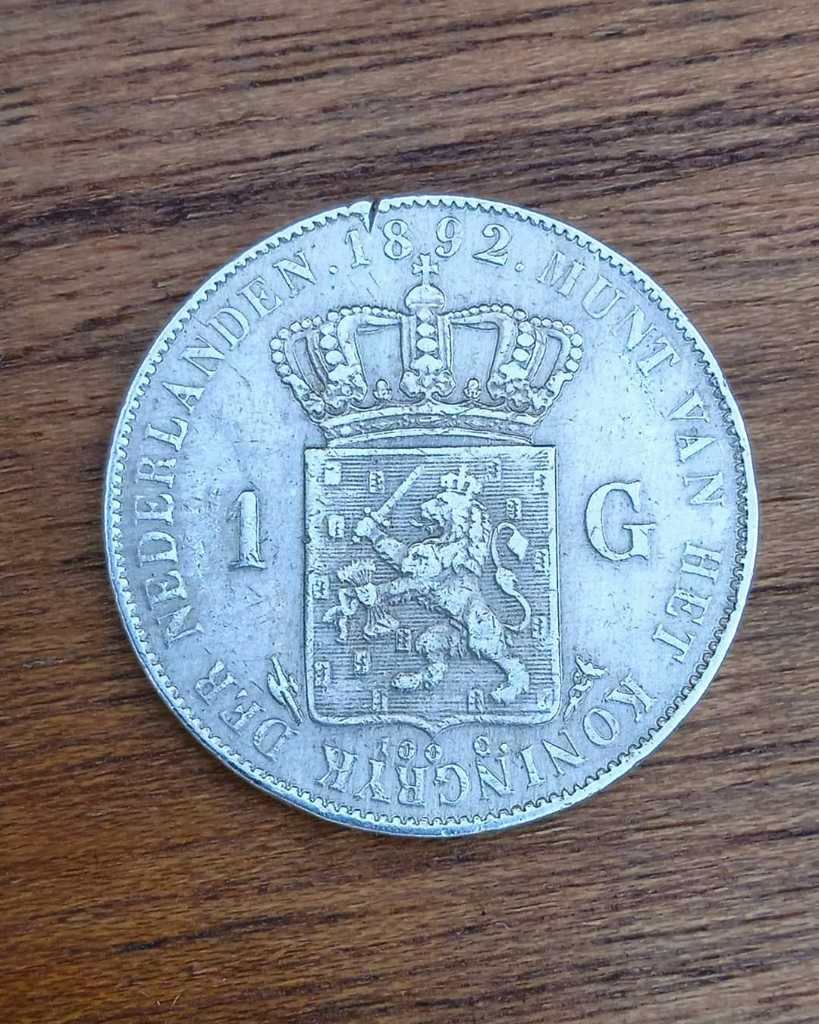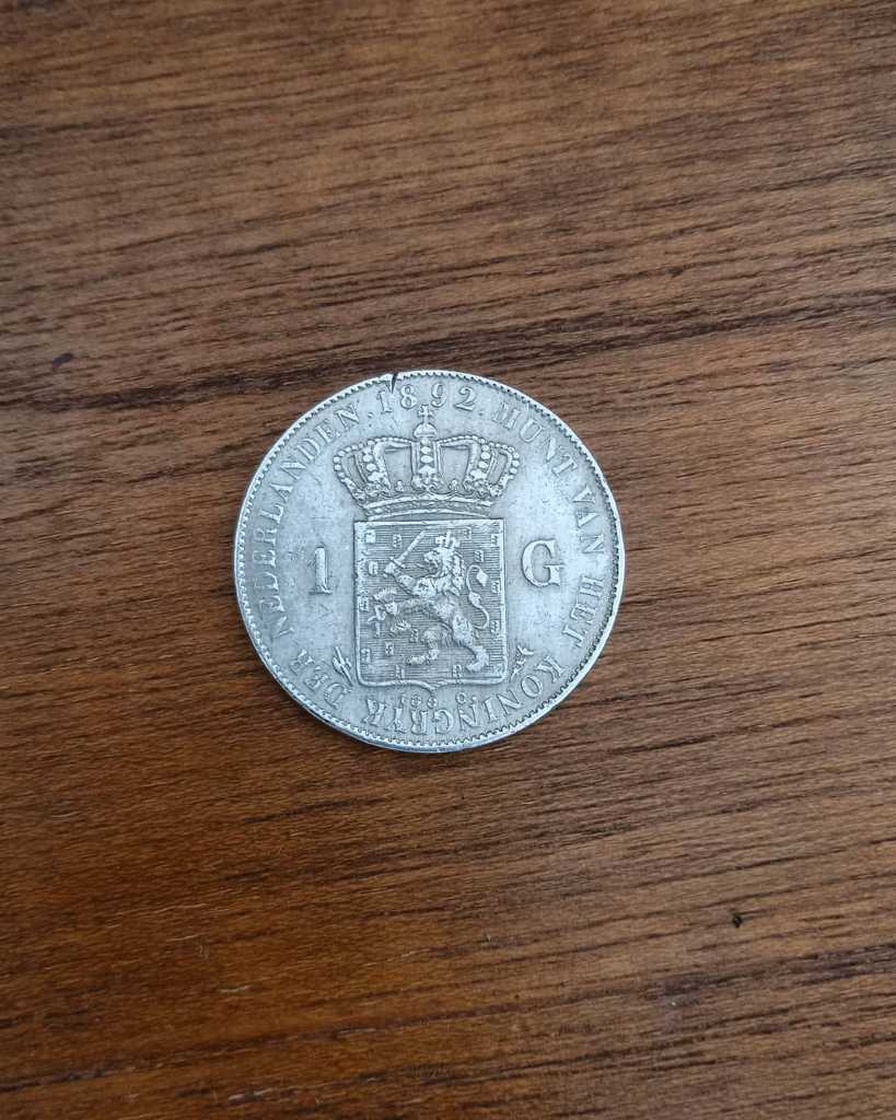Coin 1 Gulden 1892, Young Wilhelmina (long hair).