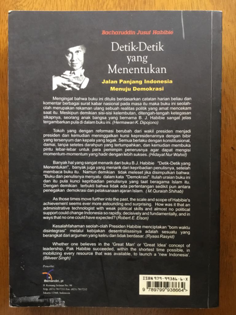 Buku berjudul lengkap “Detik-Detik yang Menentukan: Jalan Panjang Indonesia Menuju Demokrasi” ini merupakan rekaman ulang realitas politik yang amat mencekam saat itu. Dan pak B. J. Habibie menghadapinya dengan sisi kecerdasan, ketegasan, tapi juga kelembutan, mengantar bangsa Indonesia menuju demokrasi.
