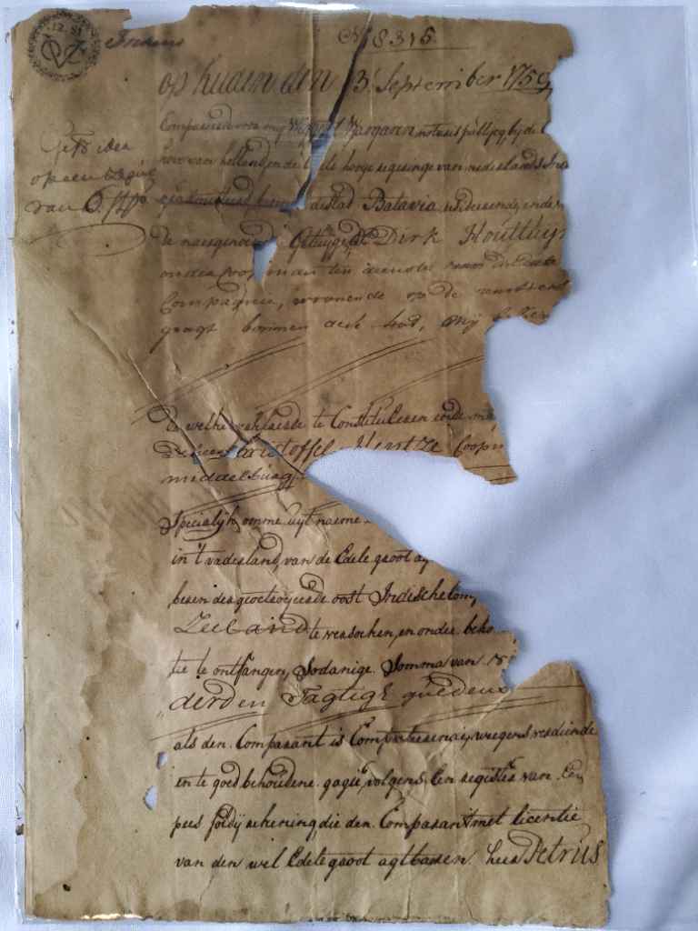 Dokumen VOC 12.St No:8315; estimasi 1700-an ; ukuran kertas folio