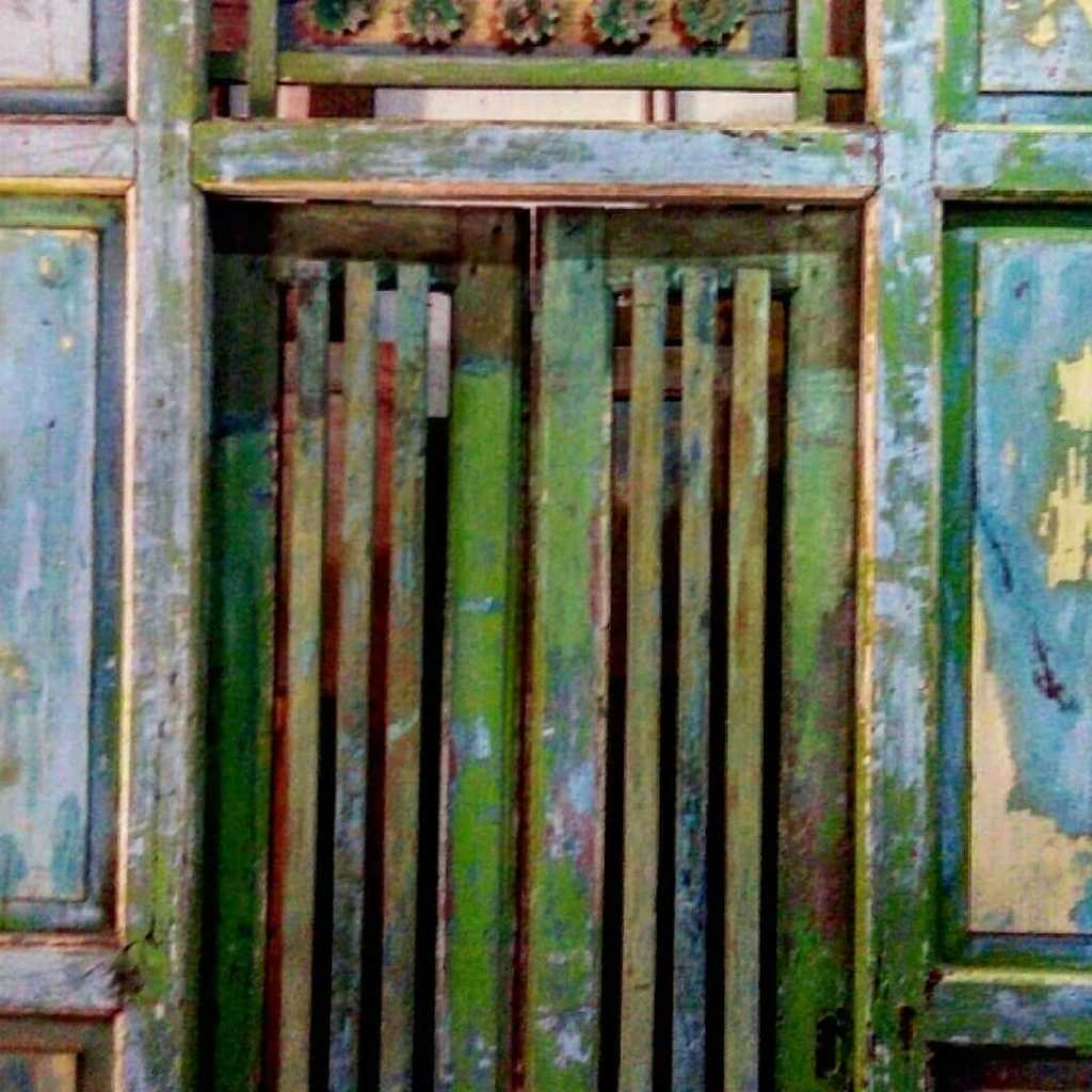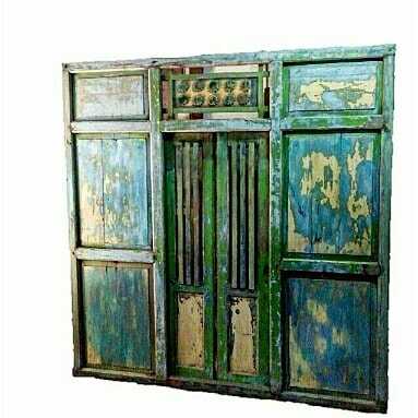 Dimensi gebyok: Tinggi= 225 cm, Lebar= 215 cm, Tebal frame= 3,5 cm, Tinggi pintu= 170 cm.