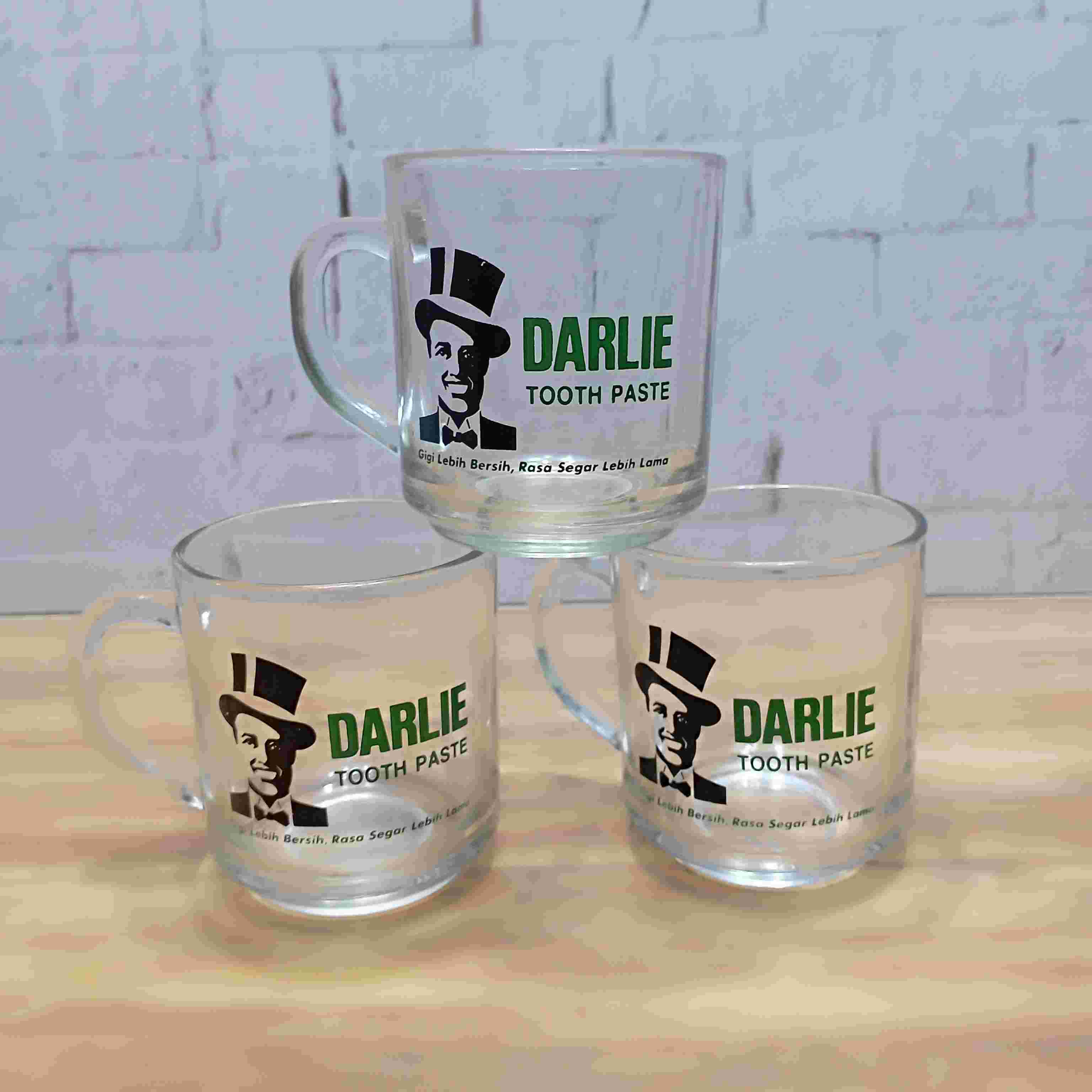 Gelas Darlie. Jadul, lawas, langka. Bahan tebal. Kondisi mulus. Harga yg tertera untuk 3 pcs