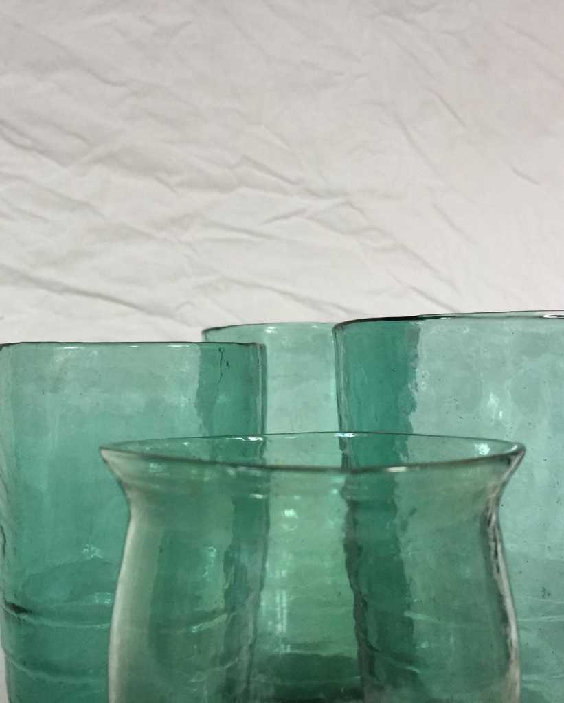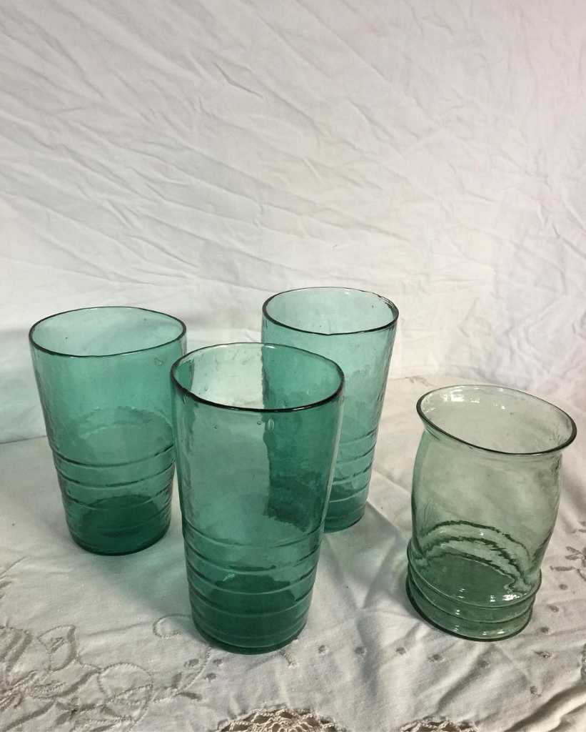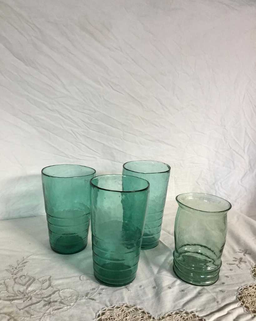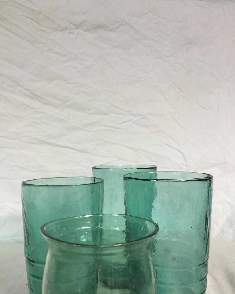 Gelas bening hijau. Tersedia dalam 2 ukuran. Kecil T-10cm D-7cmBesar T-12cm D-8cm