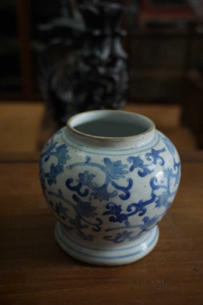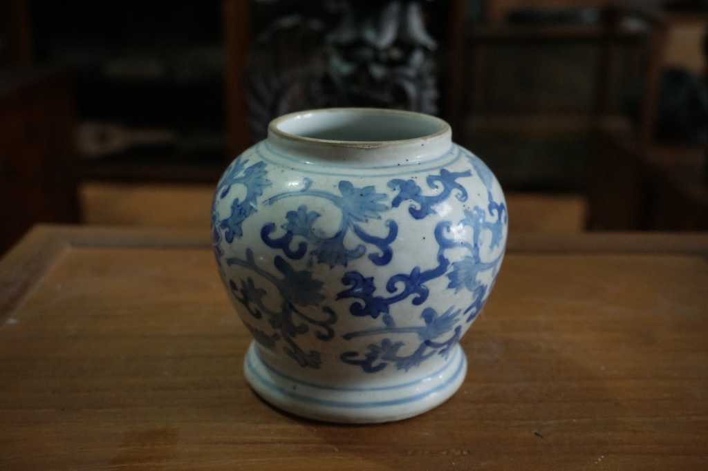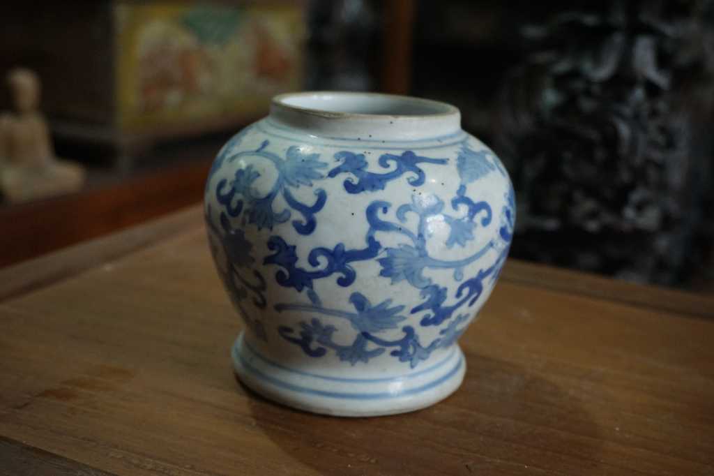 Guci motif bunga biru putih