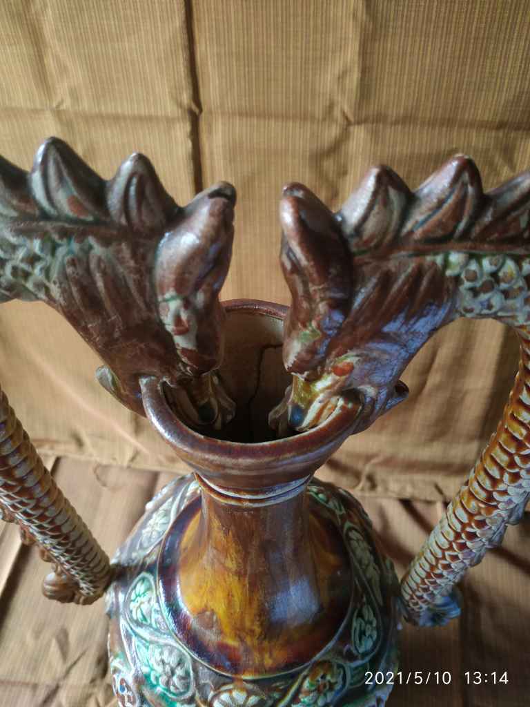 Barang Antik Vas Kristal Eropa Tua Motif Lukis Timbul Utuh Kuno Antik