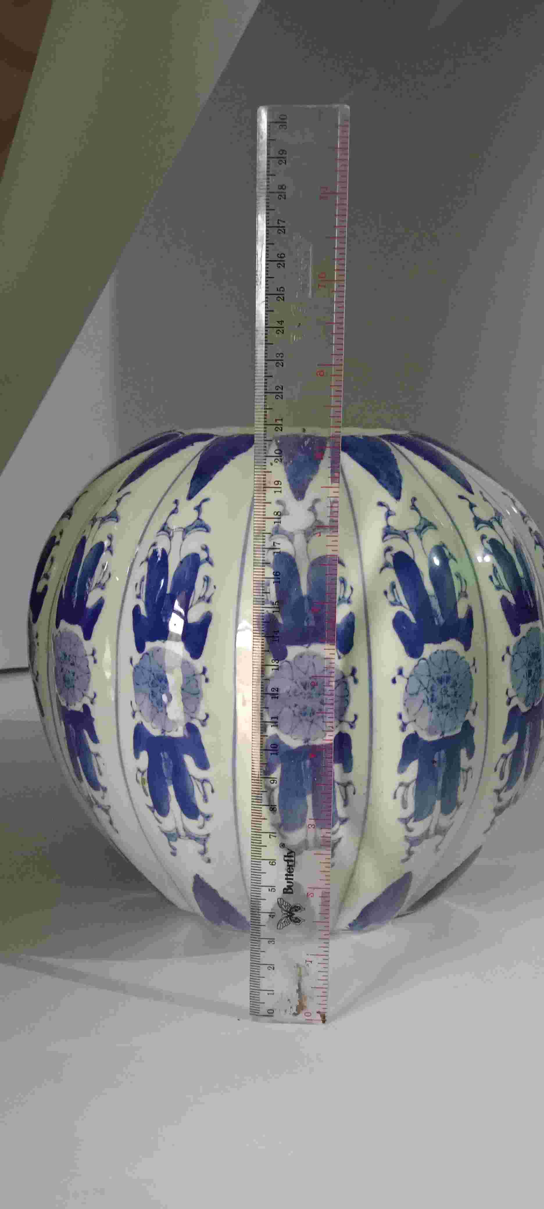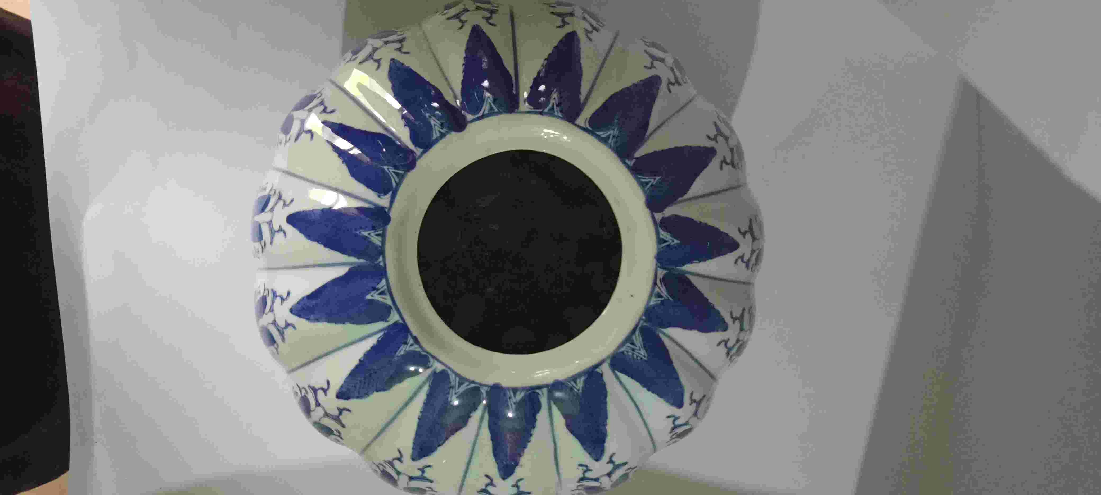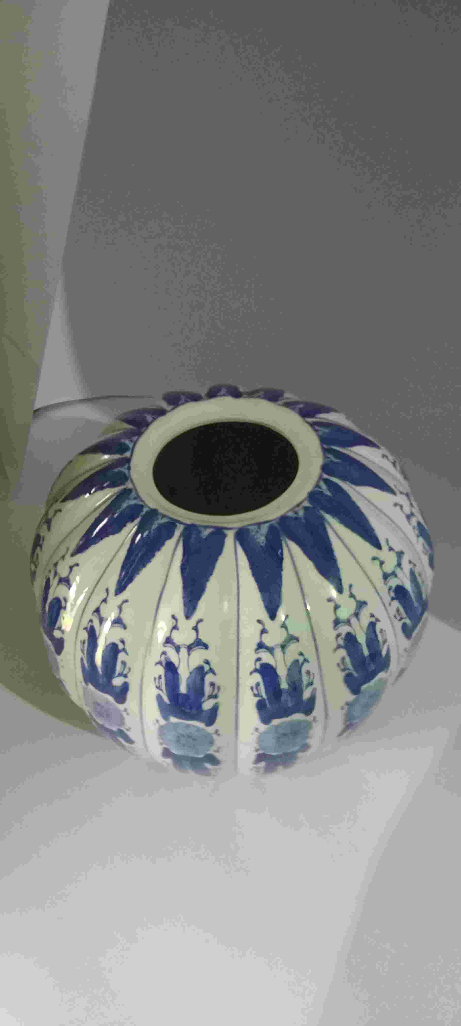 Guci labu antik porselen biru putih berat 1700g tinggi 22 cm lebar 26cm minus tutup kondisi mulus terawat baik tidak ada retak