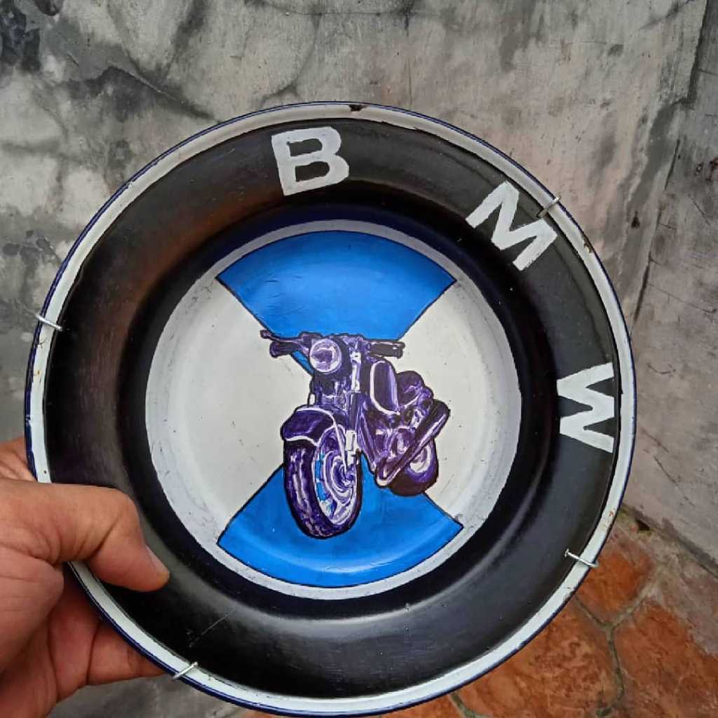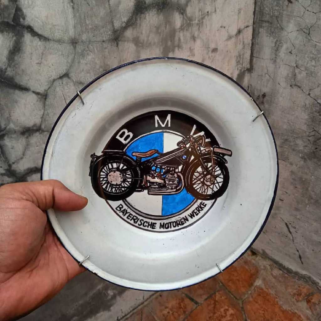 Garapan rapih.., Gambar bagus.., tema motor classic.., piring lawas..
