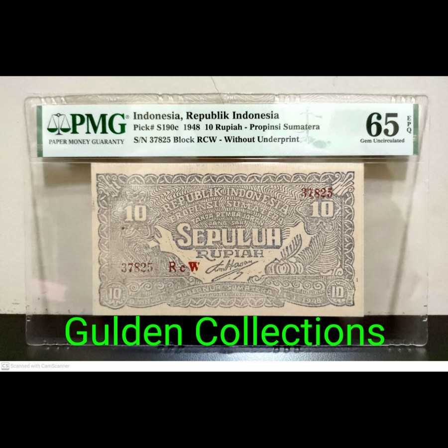 Orida Sumatra 10 Rupiah 1948Kondisi UNC PMG 65 EPQ TOP POPUang Daerah SumatraReady Stok