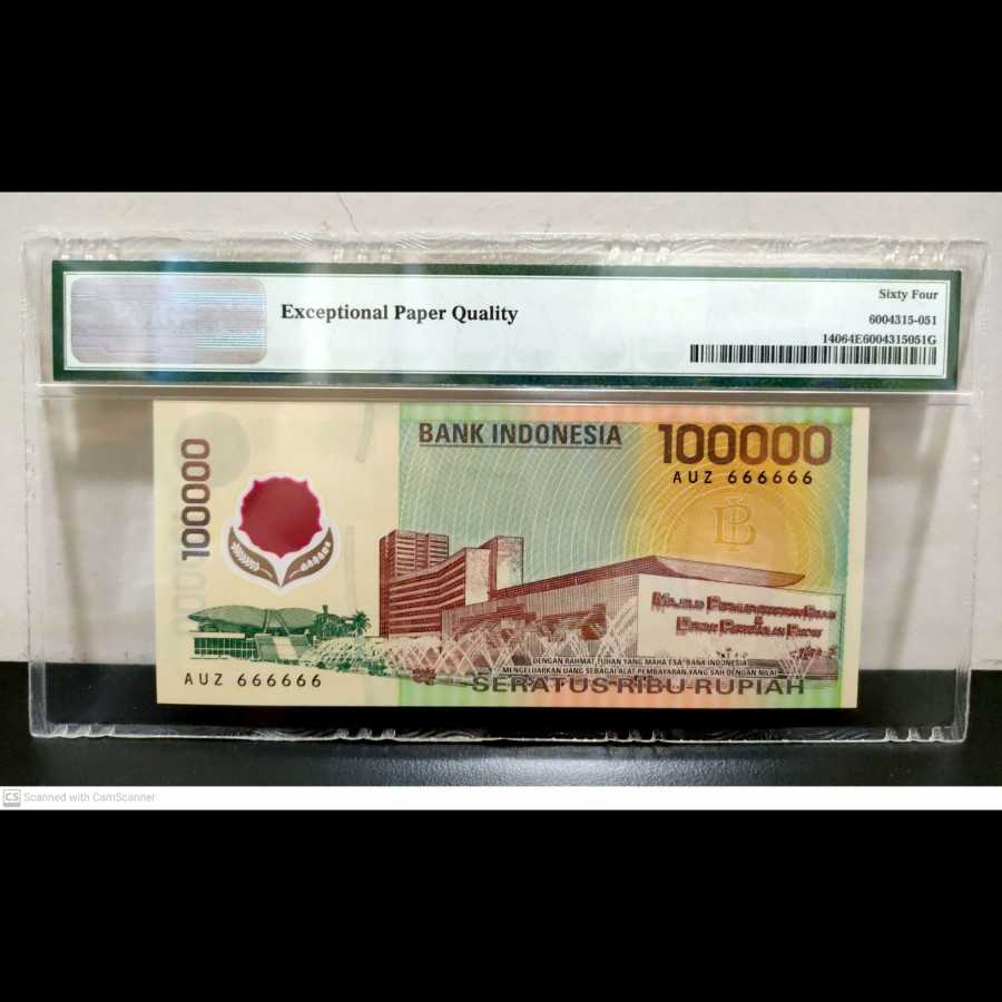 Indonesia 100000 Polymer 1999 Solid 666666 UNC PMG 64 EPQ