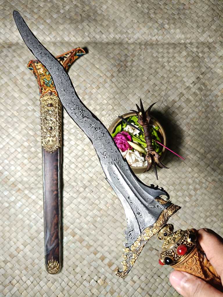 KERIS PANDAWA ULAP PUDHAK SATEGAL PAMOR UDAN MAS, Keris Luk 5 dengan Ricikan yang mirip dengan Pandawa Cinarita tetapi hanya memiliki sogokan depan, dengan tambahan