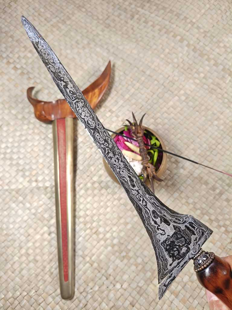PAMOR ROJO GUNDOLO, Pada umumnya, pamor rojo gundolo muncul di bagian sor-soran keris atau tombak (jarang dijumpai di tengah bilah atau pucuk). Bentuknya ada yang menyerupai gambaran abstrak hantu, makhluk halus, manusia hingga binatang. Seperti pada keris ini tampak seperti ada bentuk wajah dengan mata besar dan mulut atau rahang terbuka lebar, seperti sosok gaib sedang menatap ke arah kita. Di sisi lain, ada bentuk sapi yang sedang berbaring seperti Andini lengkap dengan punuk dan ekornya lalu diatasnya ada siluet janin manusia sedang menengadahkan tangan.