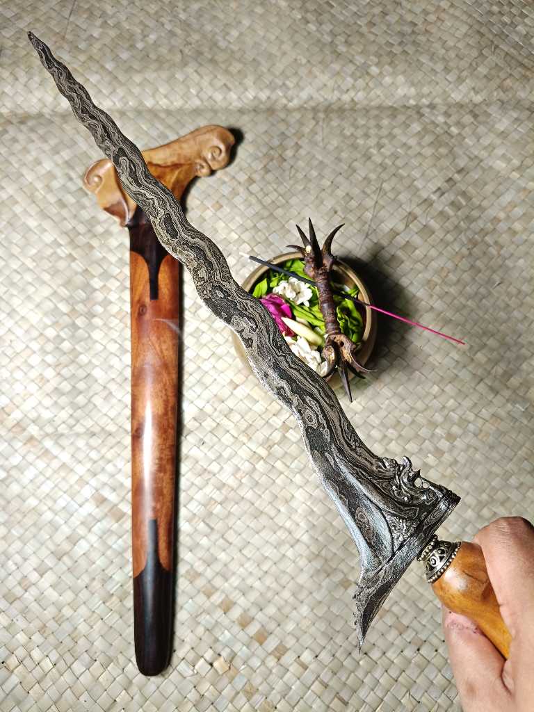 Keris Dapur Trimurda Ganan Naga Tapa Luk 19, Keris Naga merupakan salah satu dhapur keris yang sangat populer. Berbagai nama penyebutan yang sudah banyak diketahui tentang keris dhapur naga. Salah satunya adalah Naga Tapa. Naga Tapa bisa diartikan dengan Naga yang sedang bertapa ( bertirakat ). Salah satu pelajaran yang dapat kita ambil yaitu jika kita ingin cita-cita dan tujuan yang besar, maka kita juga harus kuat dengan laku prihatin ( tirakat ). Keris Naga Tapa sendiri juga sebagai simbol sebagai penguasa atau pemimpin yang sangat berwibawa, disegani dan dapat mengayomi. Luk 19 , dapur yang umum dikenal bernama Trimurda dan Karacan , sedangkan untuk dapur berganan naga sangatlah langka yang berluk 19. Dalam Islam, kata Bismillahirrahmanirrahim memiliki jumlah huruf 19, serta angka 19 juga merupakan salah satu keajaiban numerologi Al Quran , salah satu yang menelitinya adalah Rashad Khalifa , menurutnya lebih merinci terkait basmallah, dalam al-Qur’an, kata ism disebut 19 kali; kata Allah terulang sebanyak 2.698 kali yang merupakan kelipatan dari angka 19 (19 x 142); kata al-Rahman terulang sebanyak 57 kali yang juga kelipatan dari angka 19 (19 x 3); dan kata al-Rahim terulang sebanyak 114 kali dalam al-Qur’an yang juga kelipatan angka 19 (19 x 6).