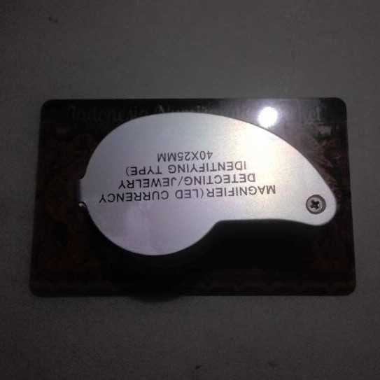 Bahan : aluminium & plastikDilengkapi lampu LED putih dan UVCocok untuk melihat detail uang koin & kertasSudah termasuk batereUkuran pas ditangan & saku