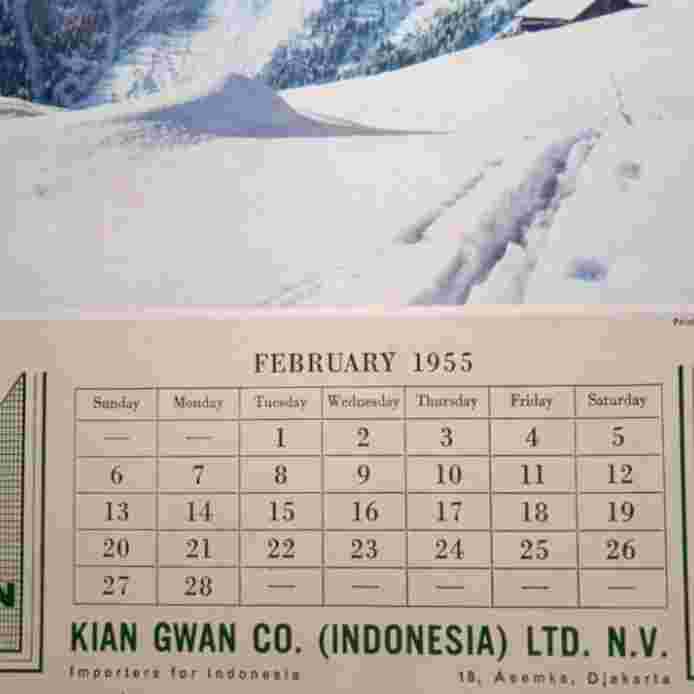 Kalender Lama Perusahan Peninggalan Oei Tiong Ham KIAN GWAN CO. Semarang Mulai dari February 1955 27 x 29 cm Kondisi Bagus, Layak Koleksi Minat Silahkan