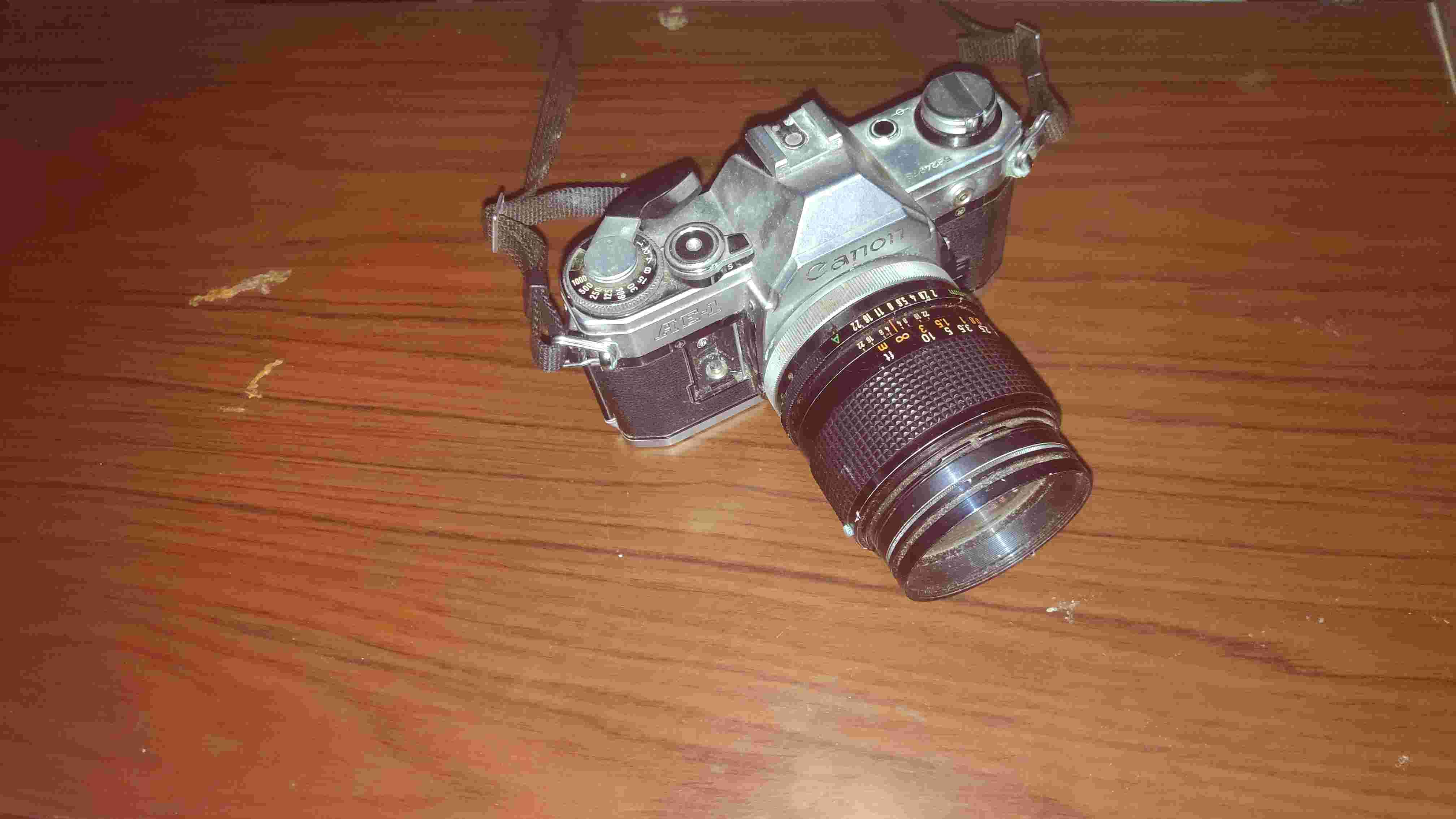 The Canon AE-1 is a 35 mm single-lens reflex (SLR) film camera for use with interchangeable lenses. It was manufactured by Canon Camera K. K. (today Canon Incorporated) in Japan from April 1976 to 1984. It uses an electronically controlled, electromagnet horizontal cloth focal plane shutter, with a speed range of 2 to 1/1000 second plus Bulb and flash X-sync of 1/60 second. The camera body is 87 mm tall, 141 mm wide, and 48 mm deep; it weighs 590 g. Most are black with chrome trim, but some are all black.