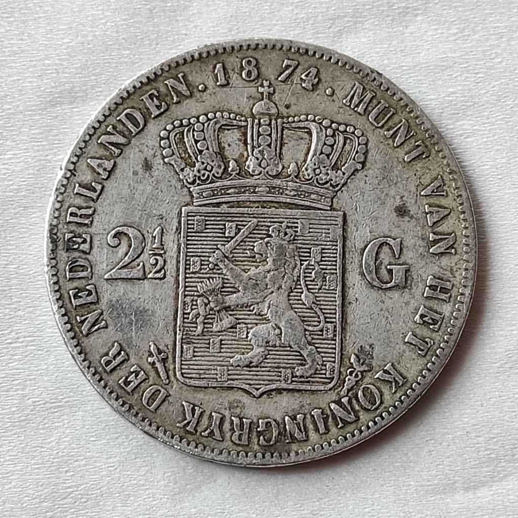Koin Perak Belanda yang berlaku juga di daerah jajahannya termasuk Netherlands Indies. Gambar : Raja Willem III Nominal: 2 1/2 Gulden 1874 Kondisi: tidak dibersihkan, ada bercak seperti warna kuning. (mohon cek foto terlampir). Informasi lainnya bisa via Hobikoe Chat.