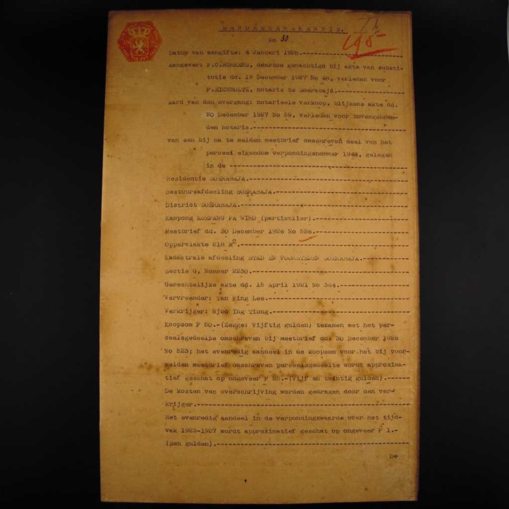 Desember 1927 Nomor 59 di hadapan Notaris Umum dari seorang surveyor yang dilaporkan